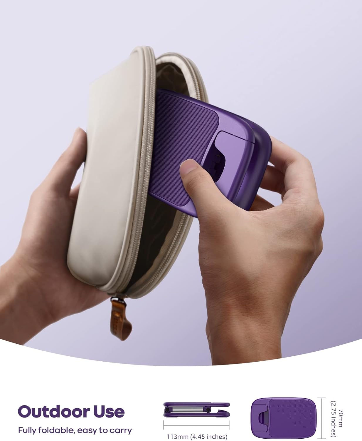 - Full Foldable & Portable - This purple phone stand is easy to carry. Bi-folding design allows this foldable mobile stand to be pocket-sized. Simply fold it up to a small size anytime and carry around into a handbag, backpack wherever you travel or business trip. Necessary purple desk accessories & workspace organizers, purple office supplies, purple cell phone accessories.