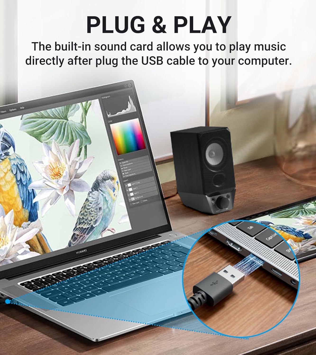 - Plug and Play: The built-in sound card allows you to connect to your PC via a single USB cable. Say goodbye to multiple wires and keep your workstation organized.