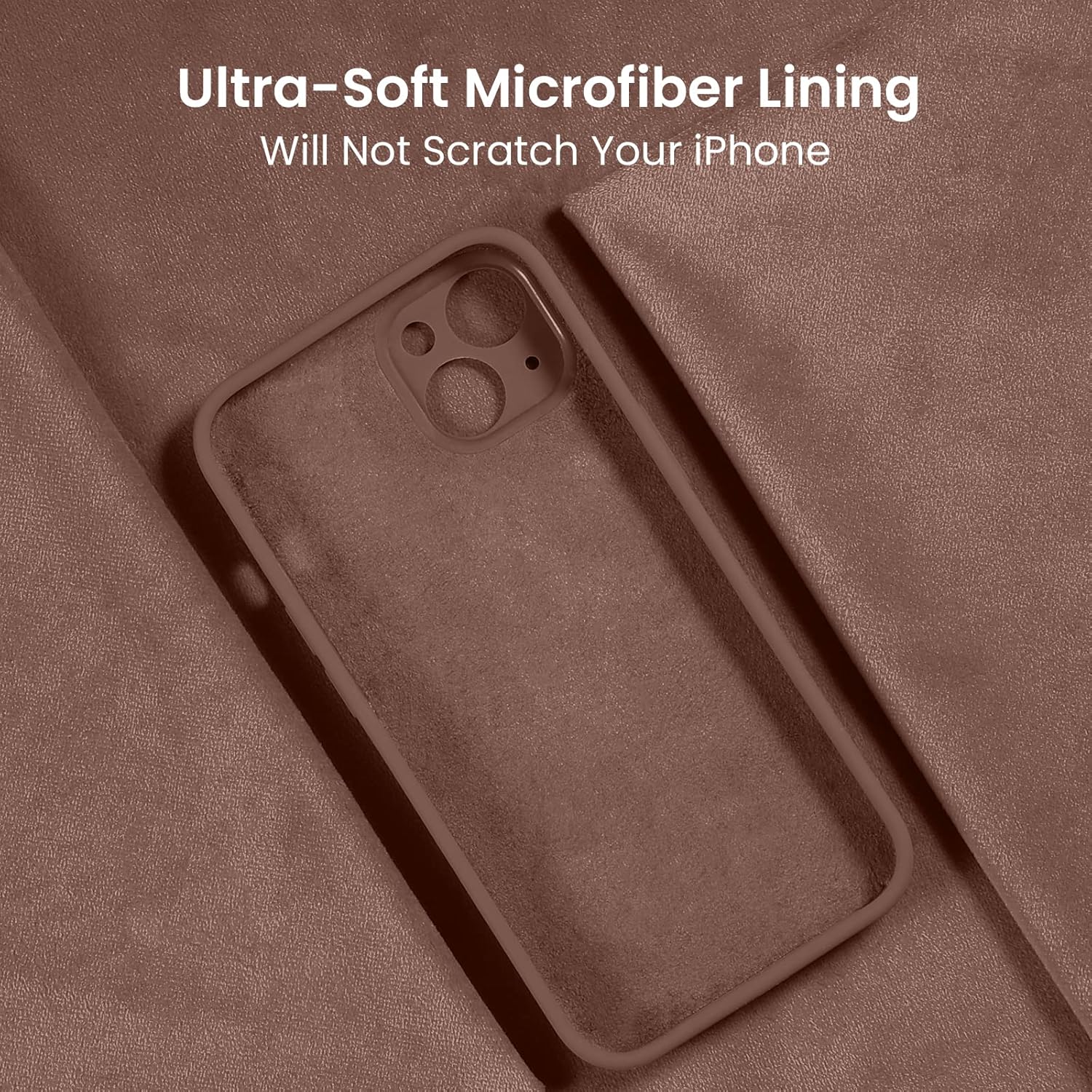 FireNova Designed for iPhone 14 Case, Silicone Upgraded [Camera Protection] Phone Case with [2 Screen Protectors], Soft Anti-Scratch Microfiber Lining Inside, 6.1 inch, Light Brown