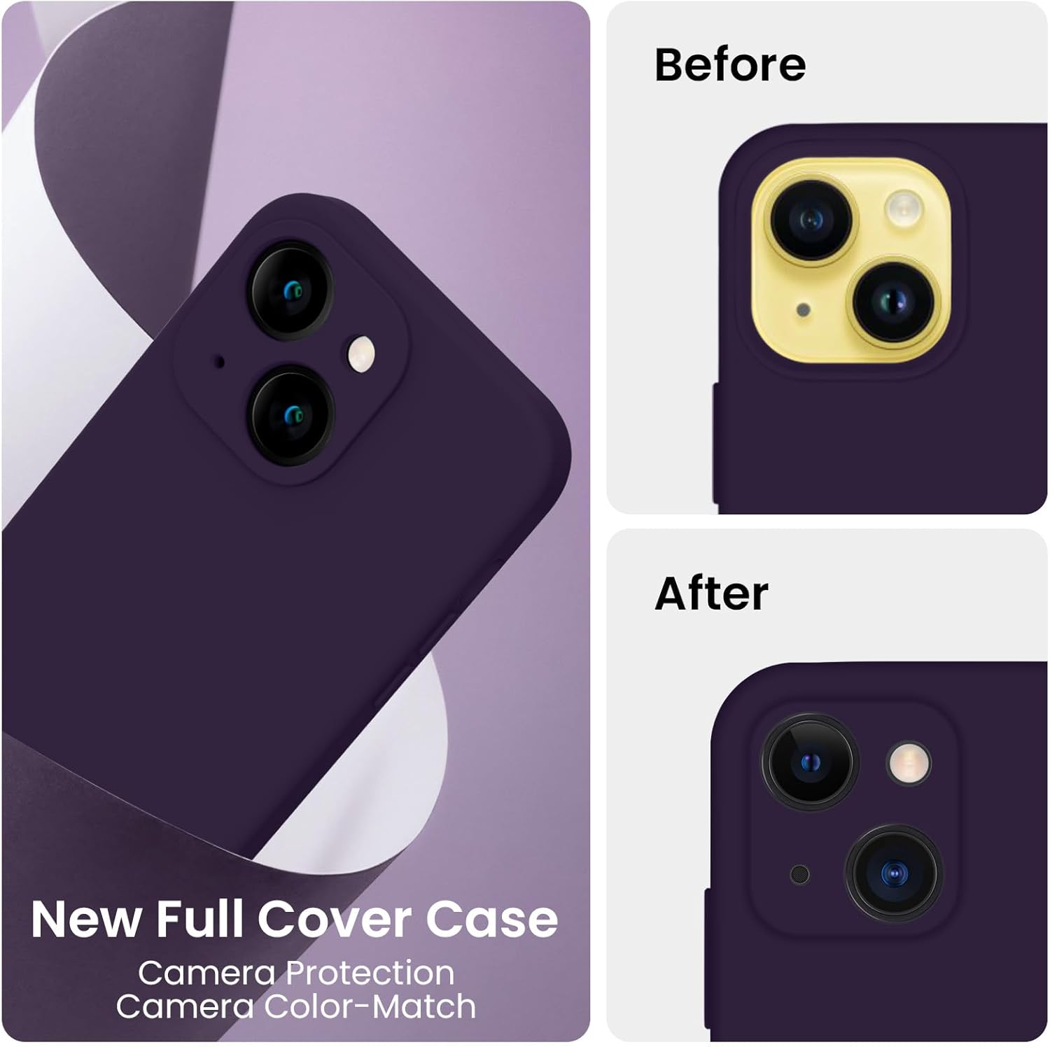 FireNova Designed for iPhone 14 Case, Silicone Upgraded [Camera Protection] Phone Case with [2 Screen Protectors], Soft Anti-Scratch Microfiber Lining Inside, 6.1 inch, Purple