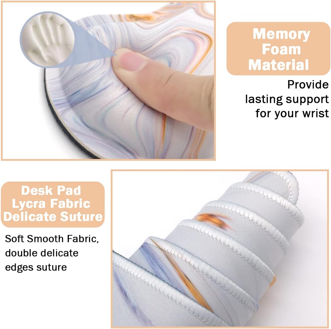 - 【4-in-1 Mouse Pad Set】: Large desk pad:35.4×15.75 inch,Keyboard wrist rest measures 17.32" x 3.15" x 0.98",Mouse wrist rest measures 5.4" x 3.15" x 0.98",Cup coaster(3.9" x 3.9"). This desk pad for keyboard and mouse, is large enough to fit your mouse, gaming keyboard, and other desk items. Keep a clean, uncluttered desk. This helps to improve the gaming experience or work efficiency in the office.