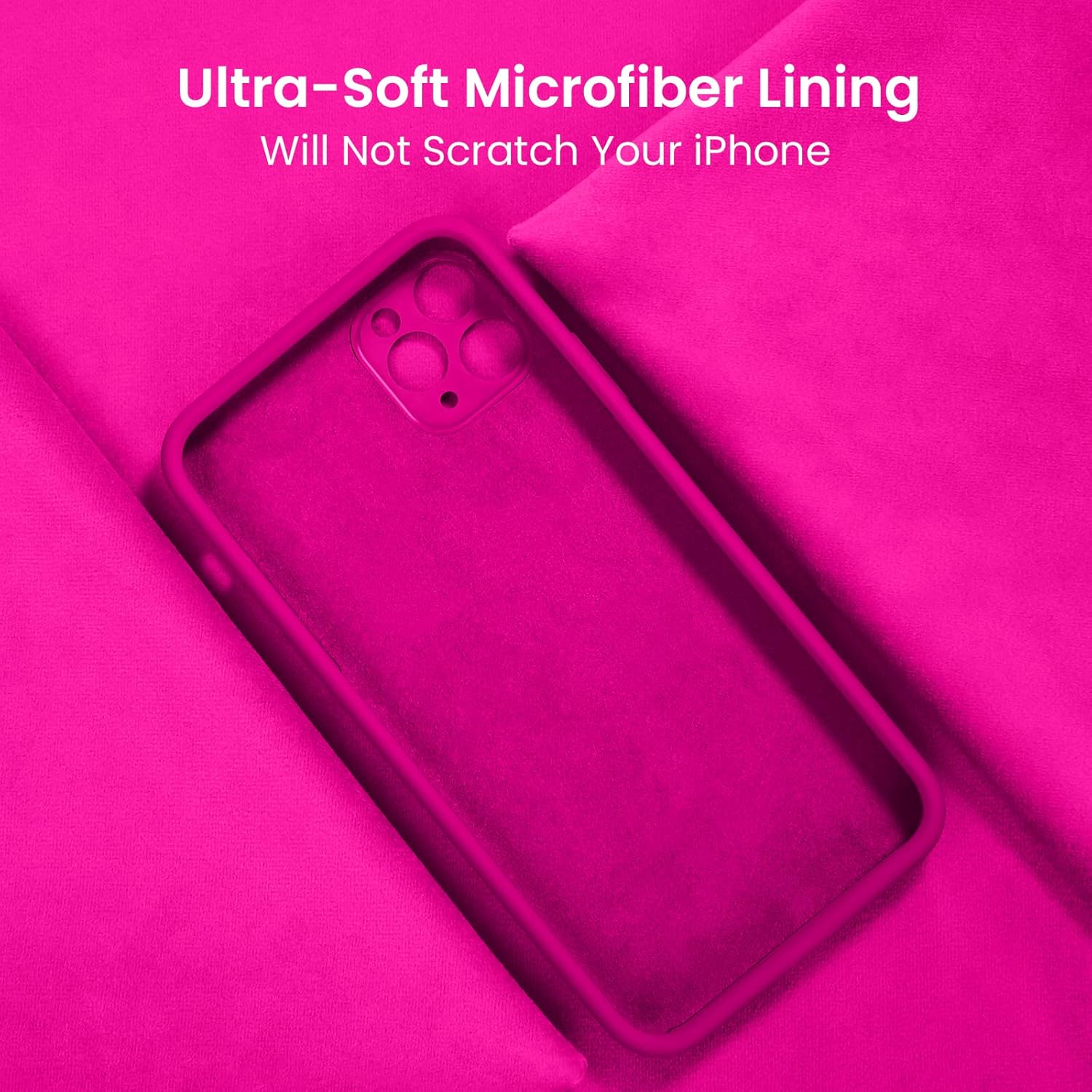 FireNova for iPhone 14 Pro Case, Silicone Upgraded [Camera Protection] Phone Case with [2 Screen Protectors], Soft Anti-Scratch Microfiber Lining Inside, 6.1 inch,Hot Pink