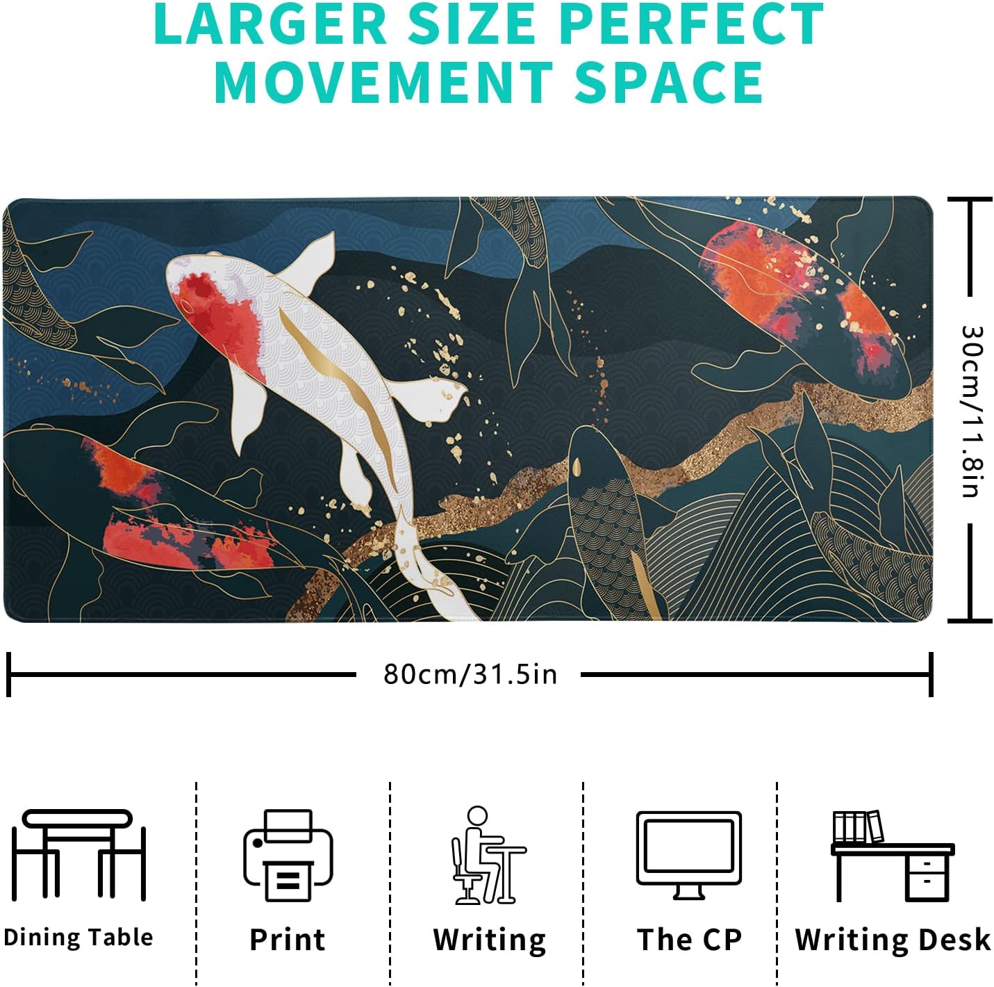 - ♥[Extended Mouse Pad Size]:The extended fish desk pad measures 31.5x11.8x0.12 inches that covers most of the desk. Offers a wide area to have your laptop, mouse and keyboard. You can freely move your mouse without any interruption and don't have to continually adjust the mat as you do with traditional mousepads.