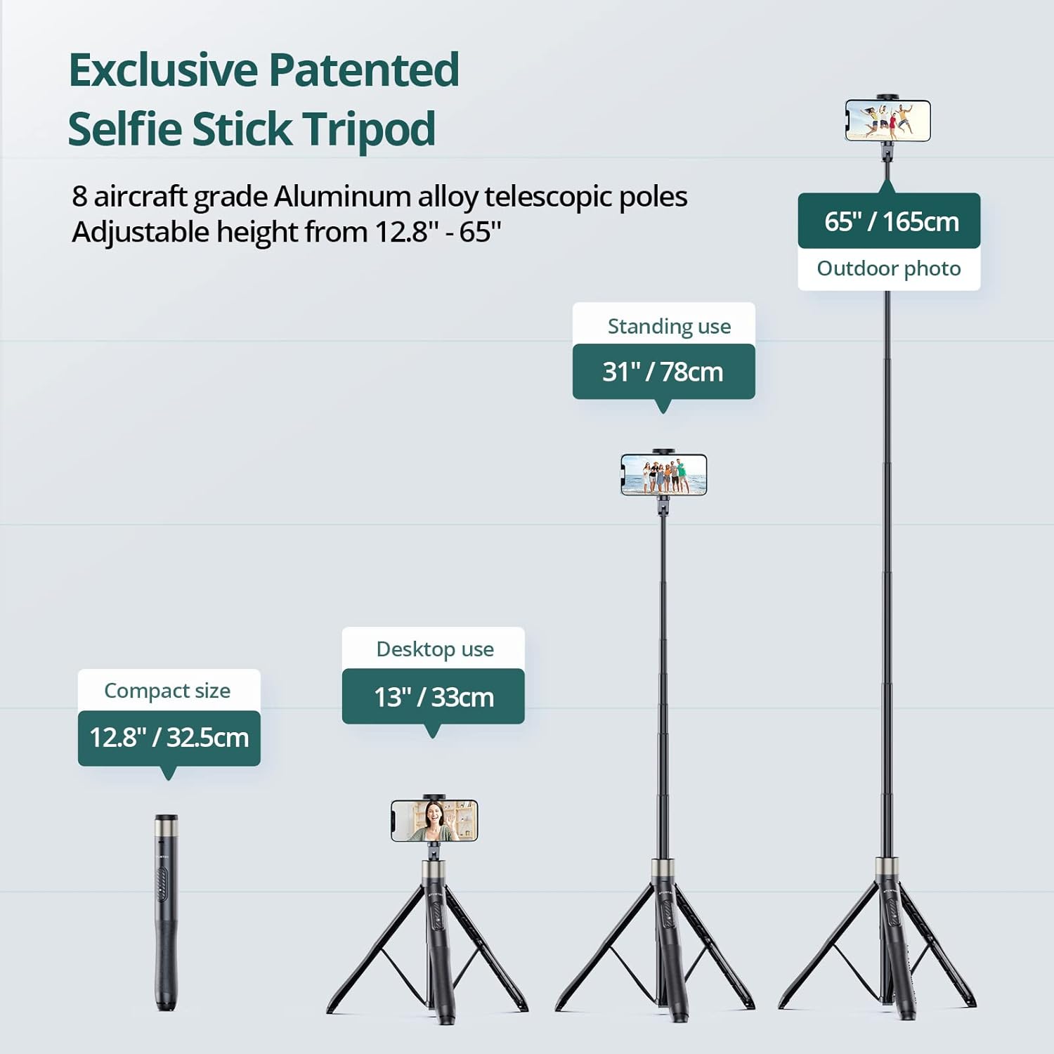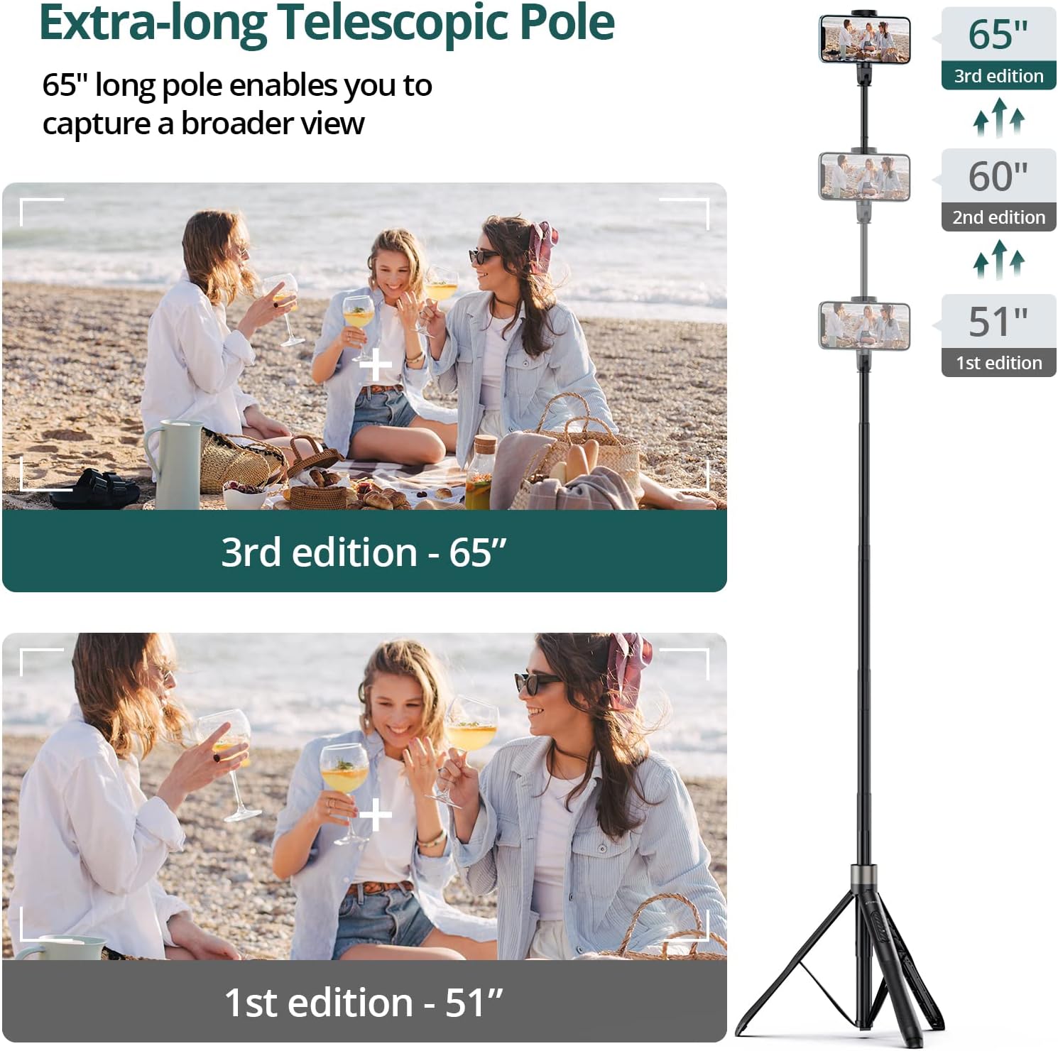 ATUMTEK 65" Selfie Stick Tripod, All in One Extendable Phone Tripod Stand with Bluetooth Remote 360° Rotation for iPhone and Android Phone Selfies, Video Recording, Vlogging, Live Streaming, Black