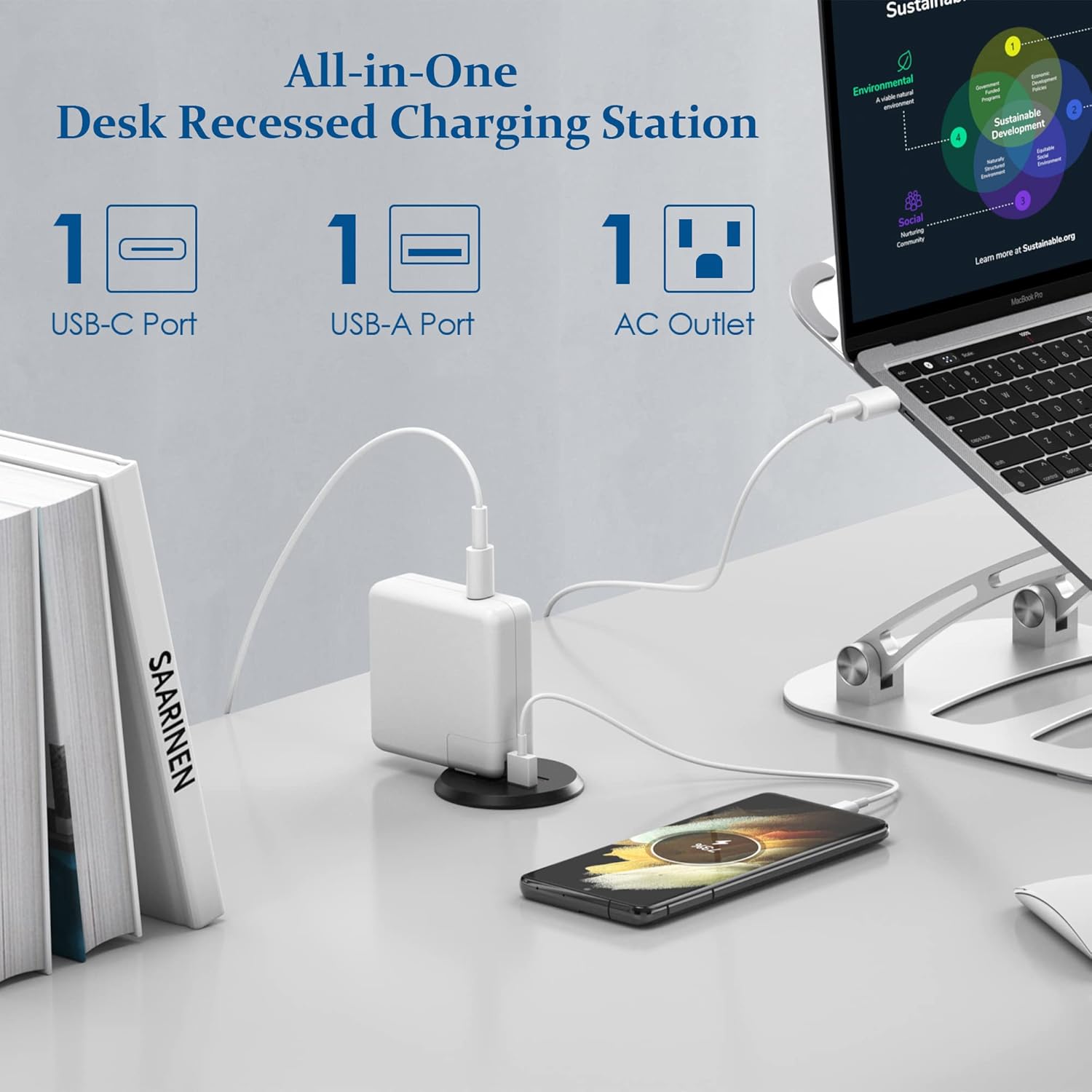 - Comprehensive protection:Jgstkcity recessed power grommet outlet with 800J surge protector.fireproof plastic material.Furniture Flush Mount Charging Station:Desk outlet for L-shaped corner desk,side table,end table,or headboard,etc.