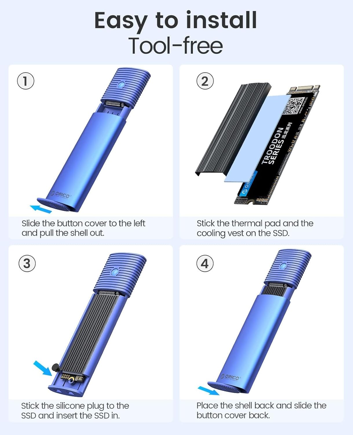 - 【Compact and Portable】 This ultra-compact NVMe SATA case is both portable and durable, which is very suitable for driving. Internal SSD is firmly using rubber fastener, and it is not easy to pop up at will