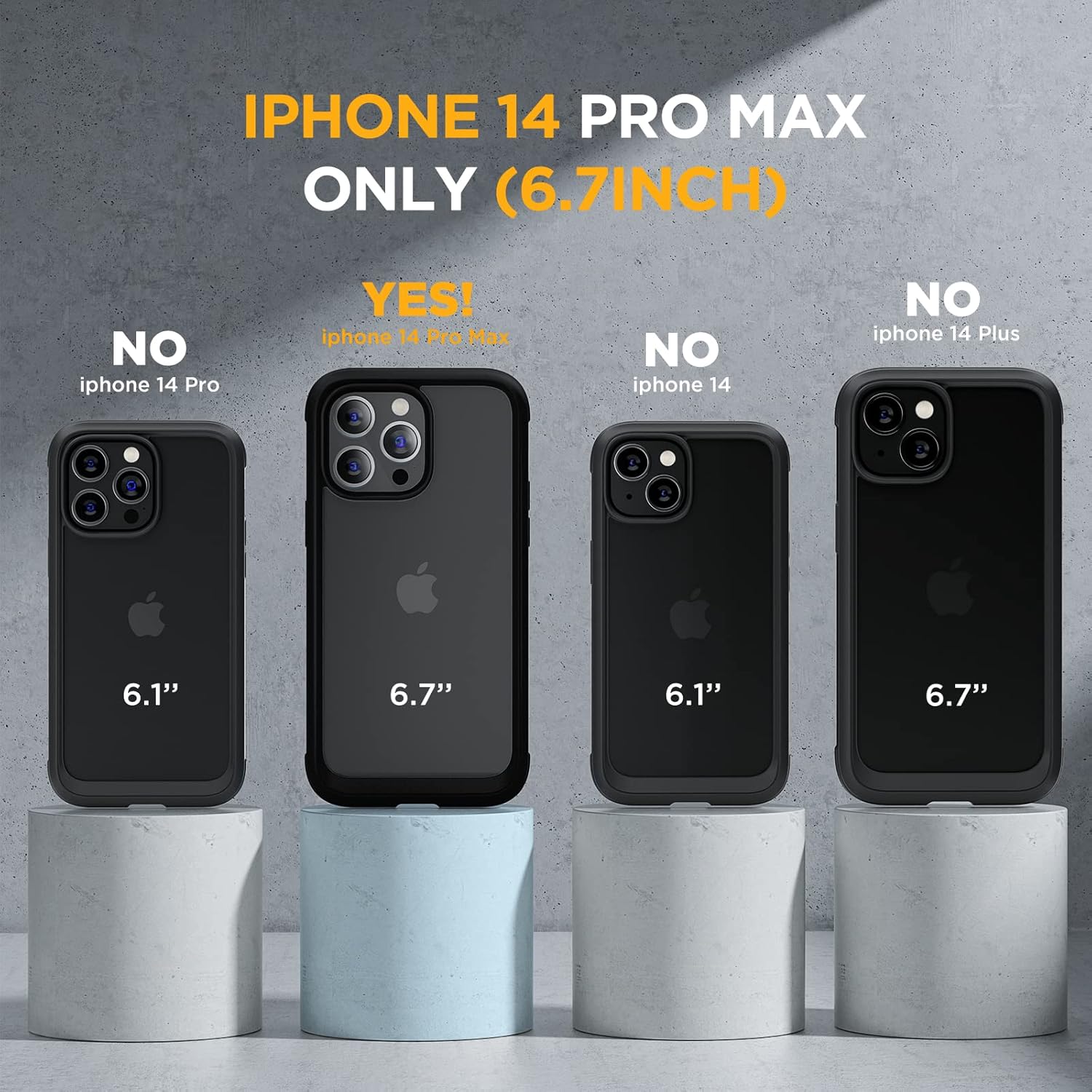 - [Compatibility & Lifetime Warranty] Compatible with iPhone 14 Pro Max 6.7 inch only (Not 14/14 Plus/14 Pro). Perfect fit for MagSafe charger and wireless charging. If you have any product problems, like incorrect size, damaged product, or any other issues with your order, Please feel free to contact us via Amazon Message Center, we will offer you a satisfactory solution.