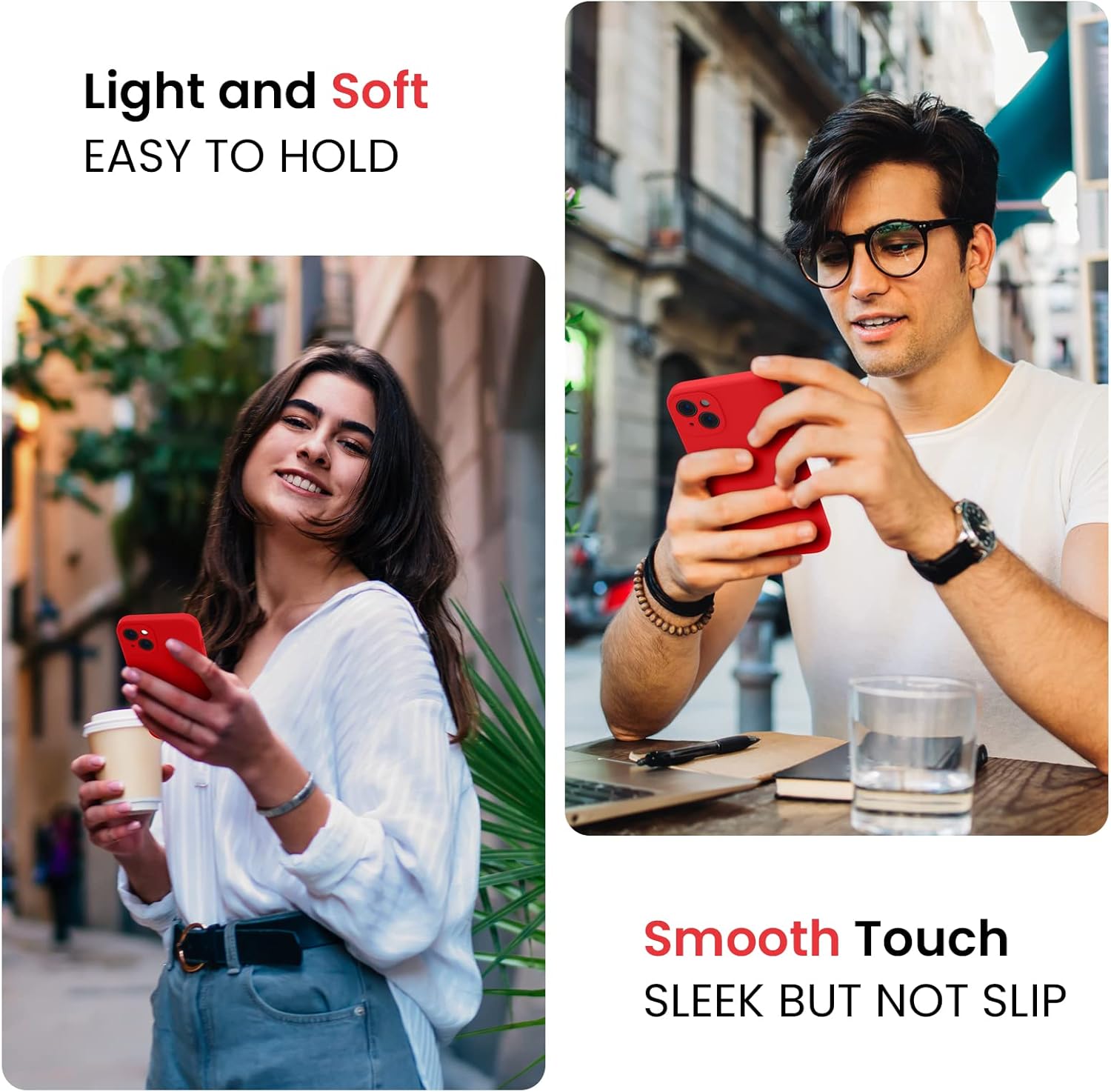 FireNova Designed for iPhone 13 Case, Silicone Upgraded [Camera Protection] Phone Case with [2 Screen Protectors], Soft Anti-Scratch Microfiber Lining Inside, 6.1 inch, Red