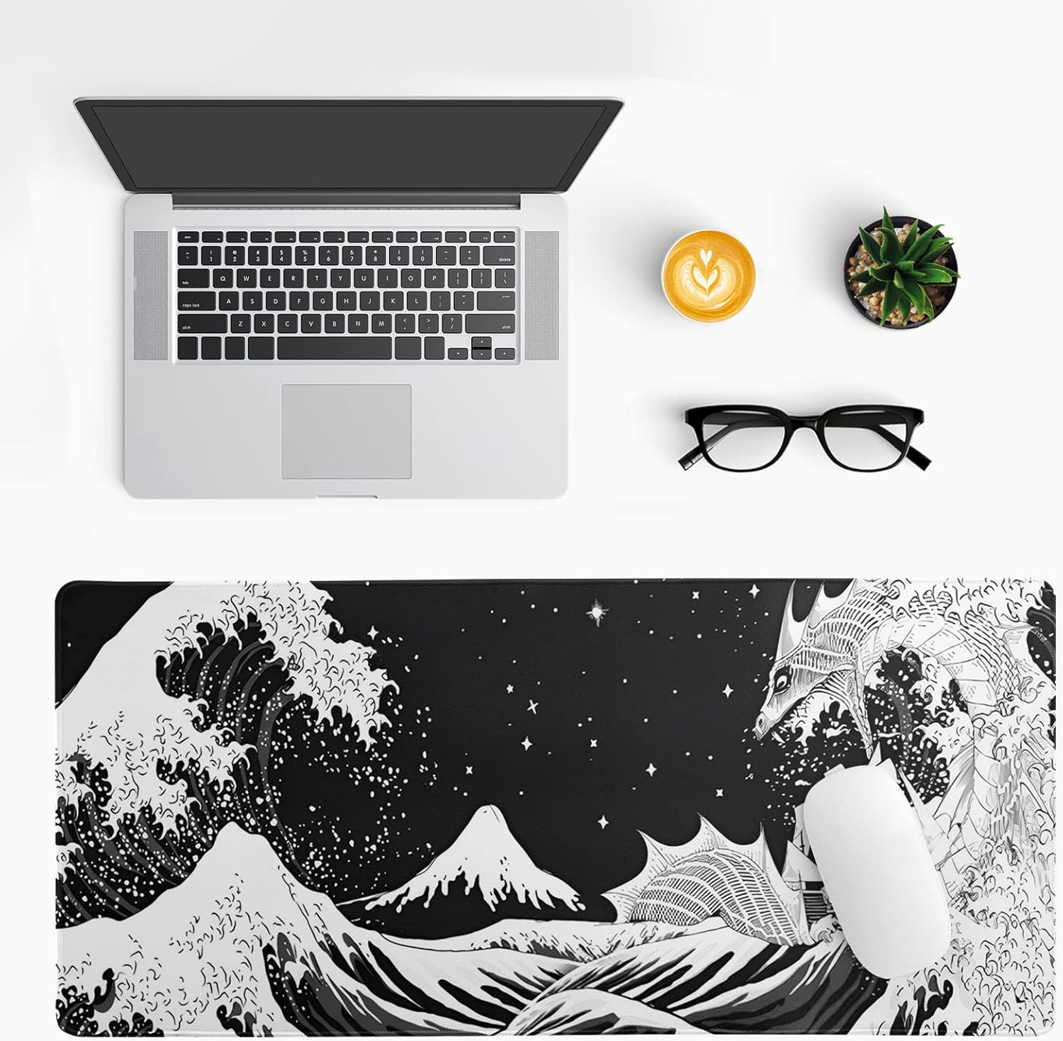 - ♥[Perfect Gift]:Our Black and White Japanese Waves Sea Dragon gaming mousepad big is also fine desktop decorations, which is the best gift for your families or friends on Thanksgiving, Christmas, New Year or other holidays. You can choose the most suitable mouse mat for you and your friend who loves gaming.
