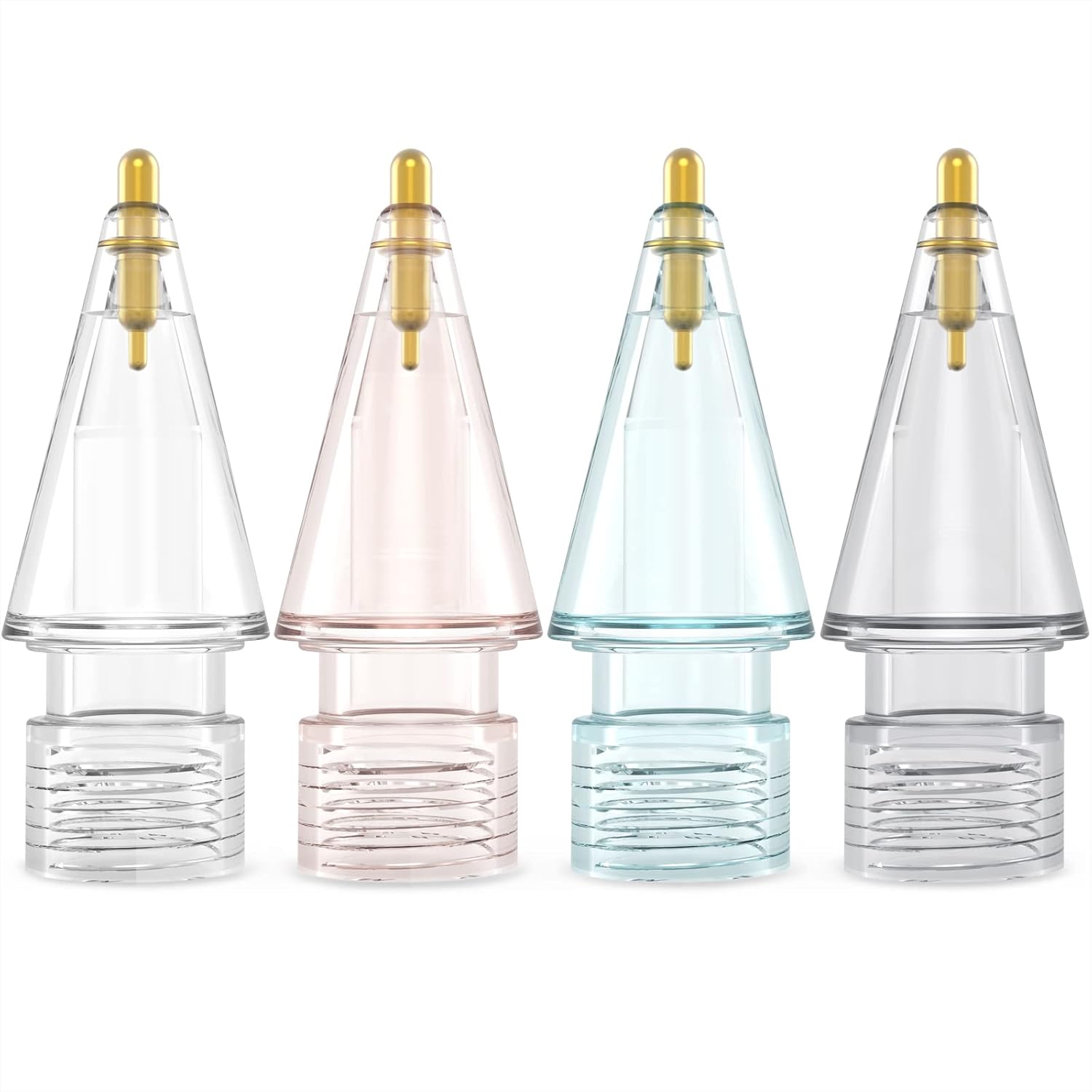 NIUTRENDZ 4 Pack Replacement Tips for Apple Pencil 2nd Generation and 1st Generation Fine Point Metal Tip, Wear-Resistant & Precise Control (1.95mm, Clear + Pink + Blue + Grey)