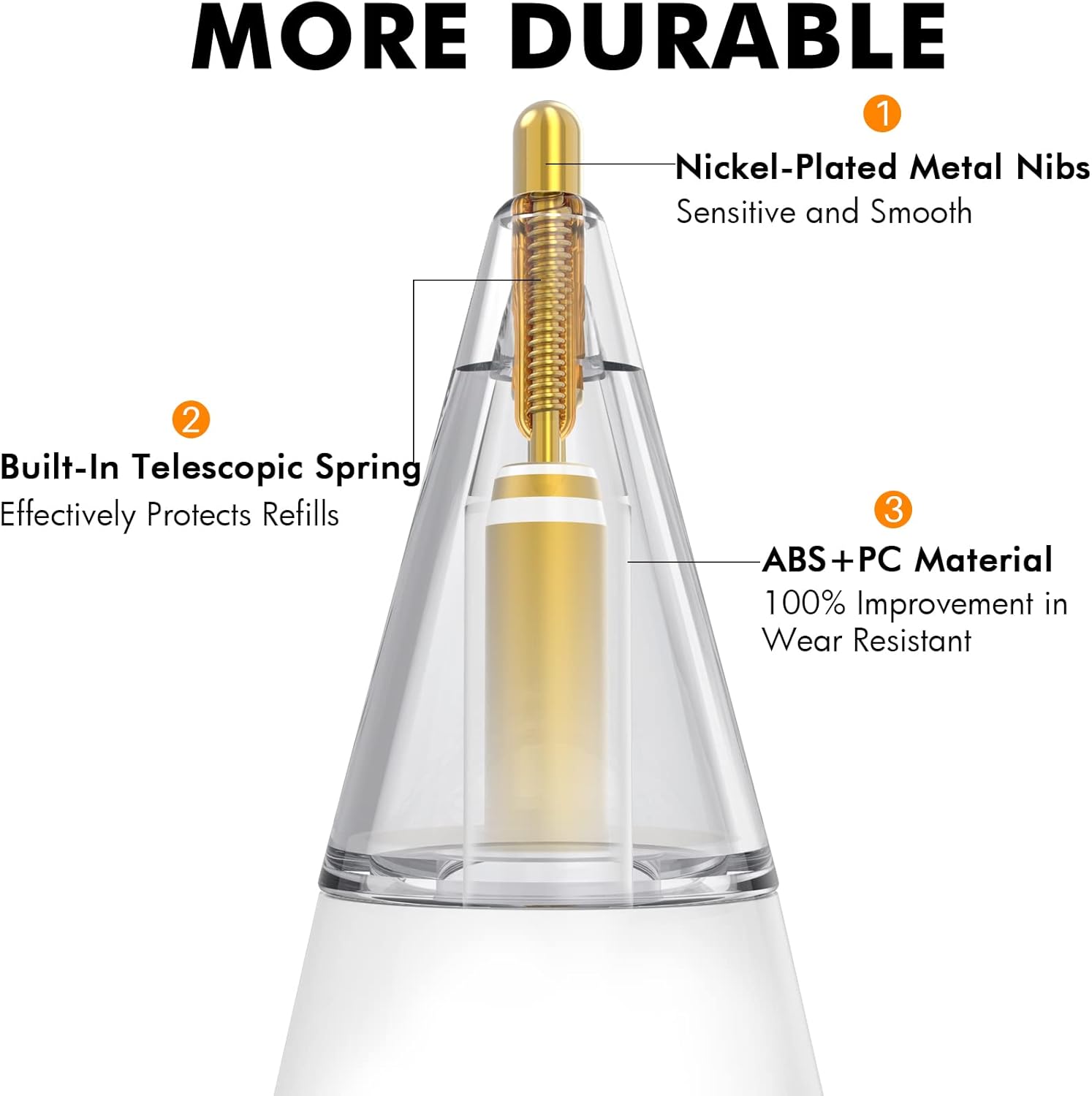 - 【MORE DURABLE】Upgraded nickel-plated metal stylus nibs, highly polished and wear-resistant, won't scratch your screen