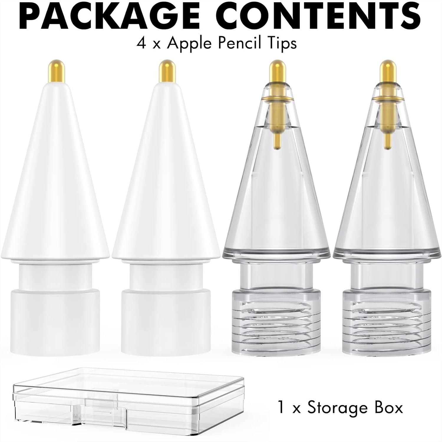 - 【WHAT YOU GET】4 x Apple Pencil Replacement Tips, 1 x Storage Box (Apple Pencil is NOT included)