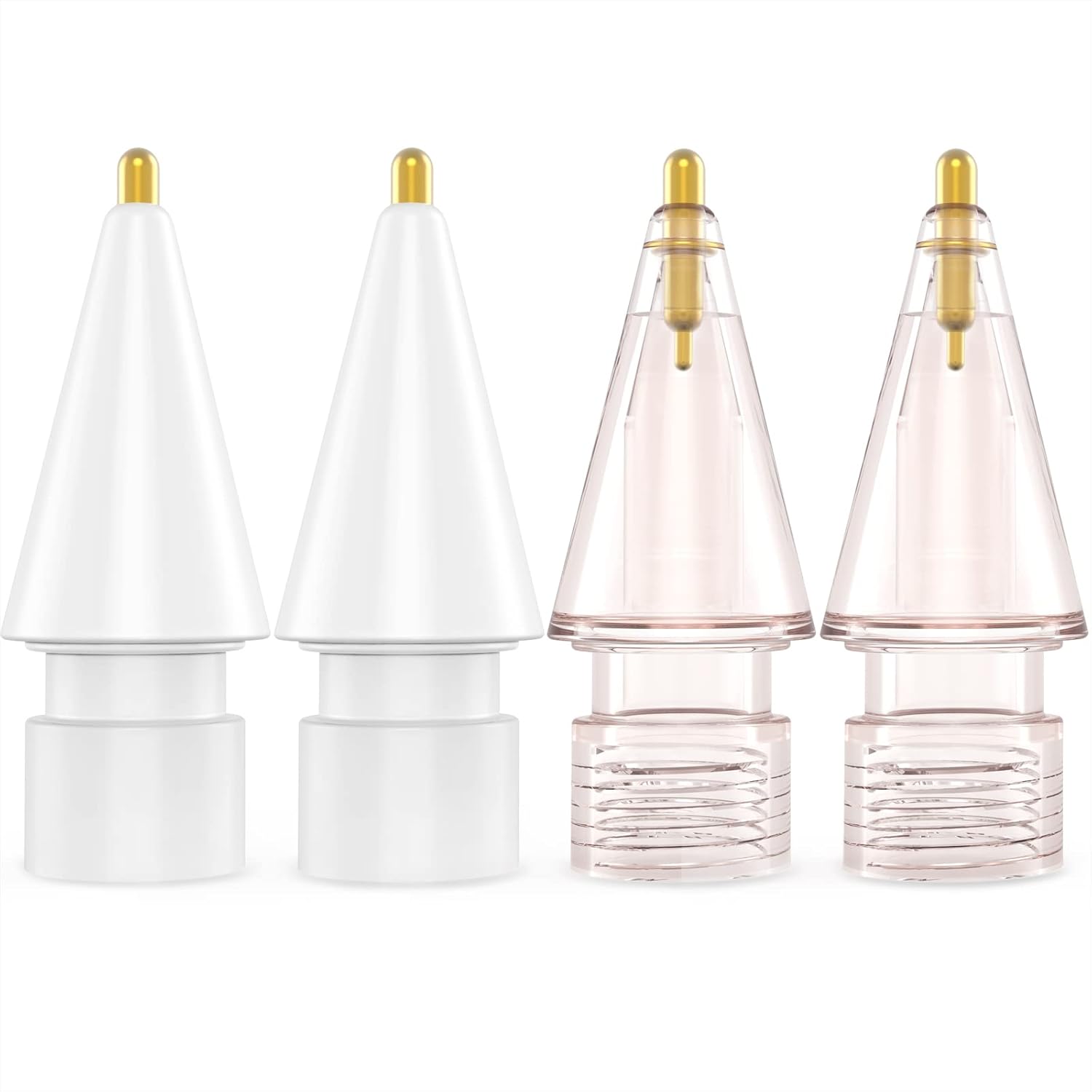 NIUTRENDZ 4 Pack Replacement Tips for Apple Pencil 2nd Generation and 1st Generation Fine Point Metal Tip, Wear-Resistant & Precise Control (1.95mm, White + Pink)
