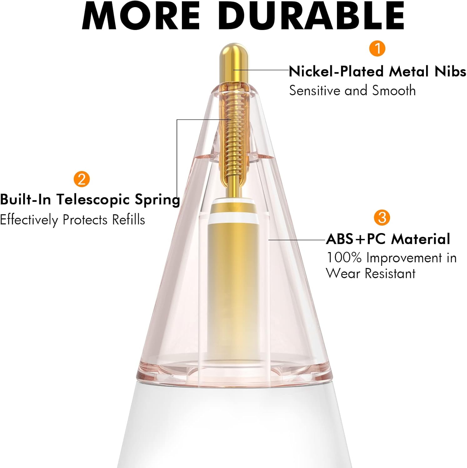 - 【SENSITIVE & SMOOTH】Built-in spring in stylus nibs, increased refill sensitivity, make writing and drawing more fluid, feel more like a real pen