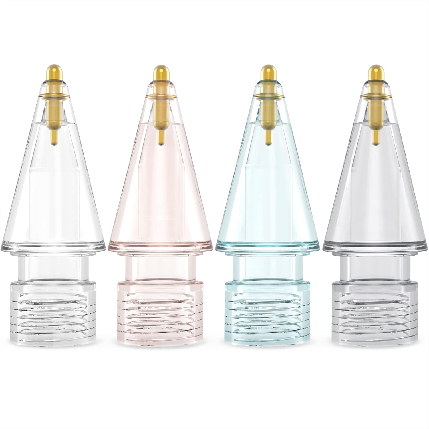 NIUTRENDZ 4 Pack Replacement Tips for Apple Pencil 2nd Generation and 1st Generation Fine Point Metal Tip, Wear-Resistant & Precise Control (1.05mm, Clear + Pink + Blue + Grey)