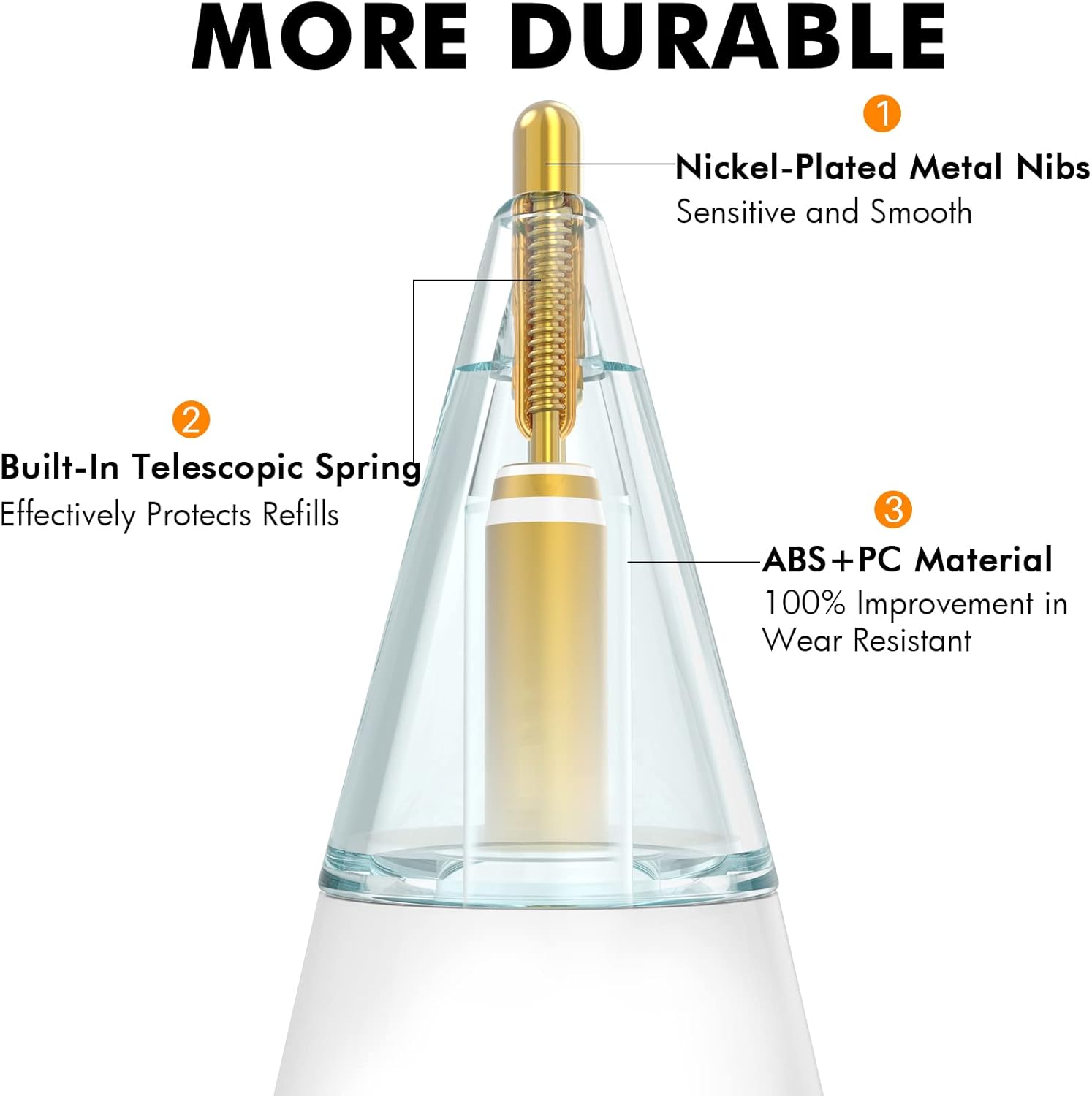 - 【MORE DURABLE】Upgraded nickel-plated metal stylus nibs, highly polished and wear-resistant, won't scratch your screen