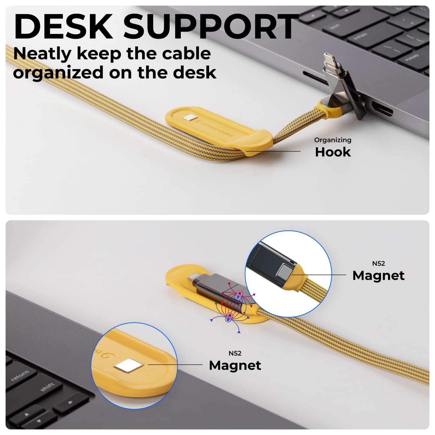 Rolling Square InCharge XL 300cm - USB C Charger Cable, Lightning Cable for Smartphone, Universal Cable Charger 6 in 1, USB Plug, Yellow, 100W
