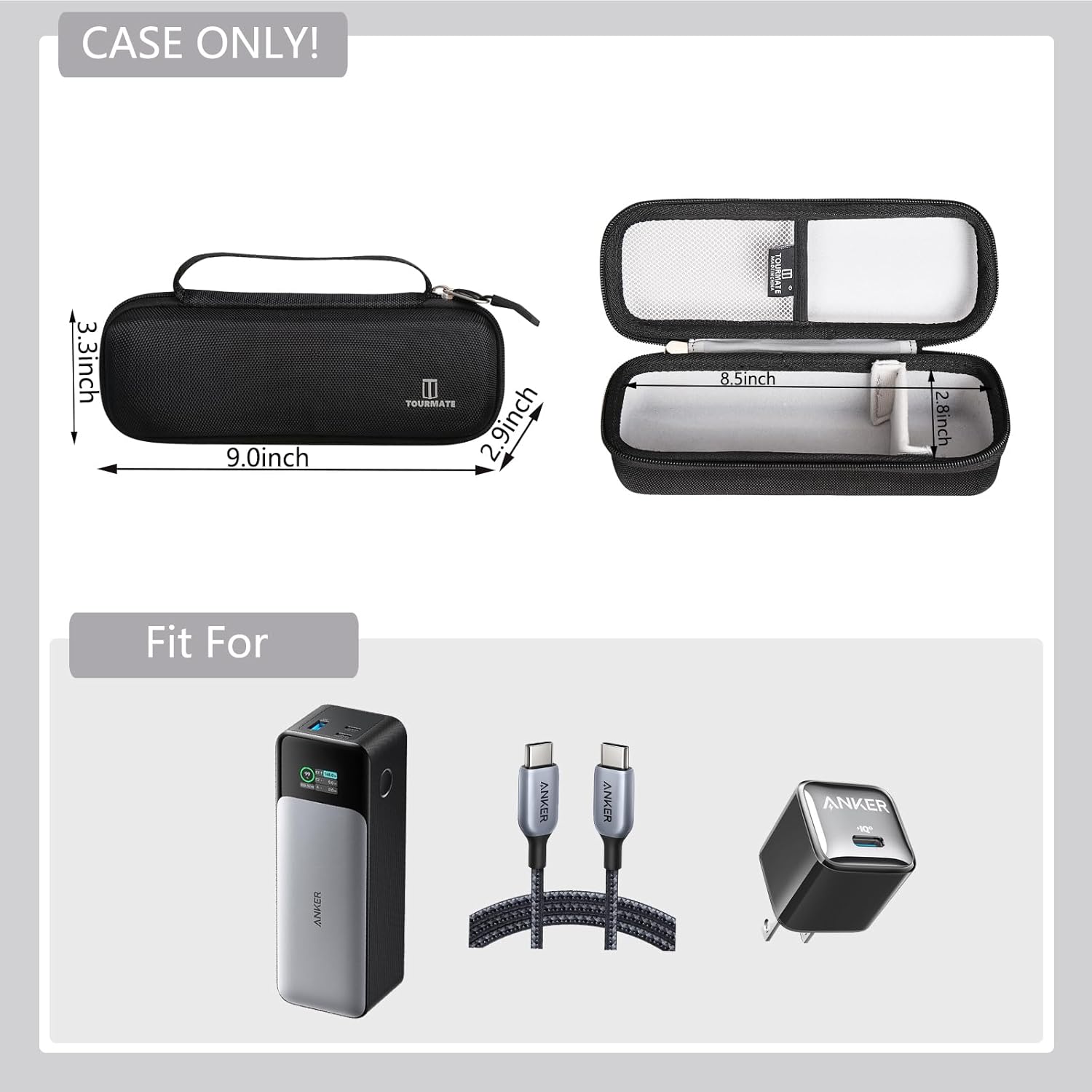- External dimensions L*W*H: 9*3.3*2.9 inches.(tools not included) Our travel protective carrying storage case is a perfect fit Anker charging station holder is designed for Anker 737 24,000mAh/ for Anker Prime 27,650mAh laptop portable charger
