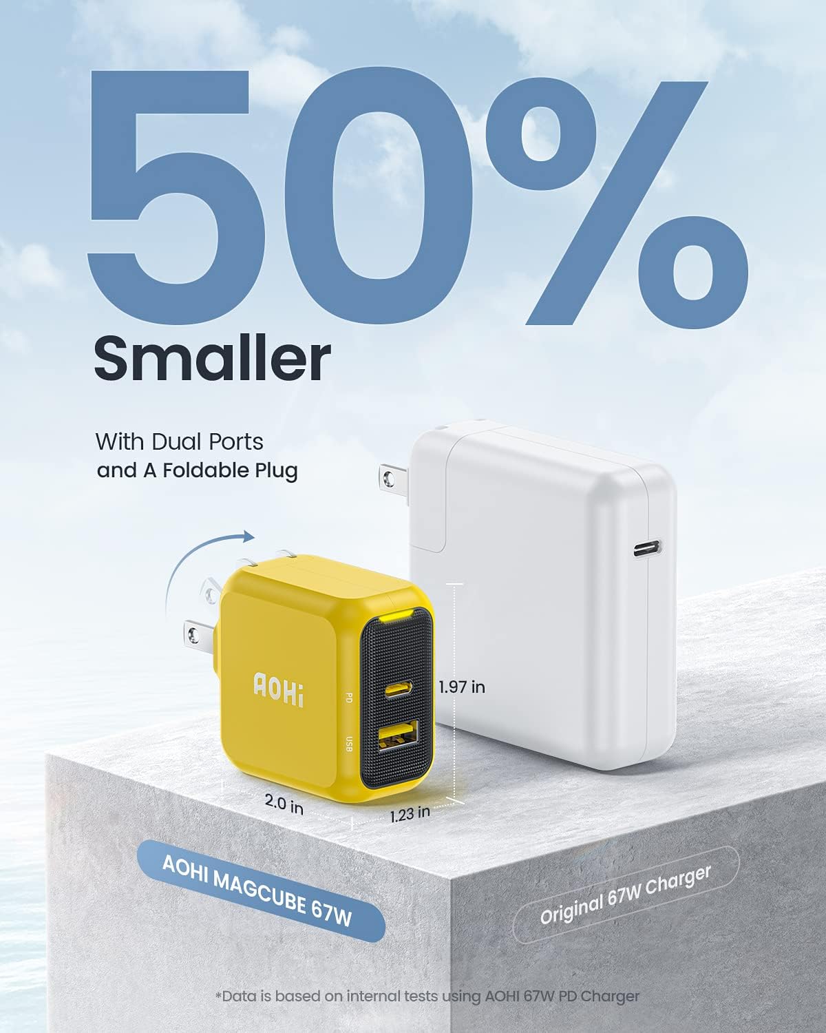 - Visible Fast Charging: This 67w charger intelligently adjusts the output power according to the charging status of the device, and AOHI's unique 3-stage smart charging indicator allows you to check the charging status at a glance