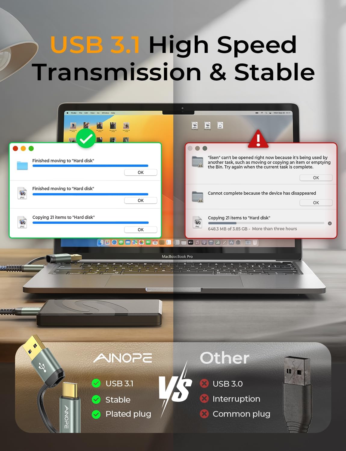 - 【New Upgrade Generation】 AINOPE has finished researching quantities for product feedback. Most customers refer to the USB 3.0 hard drive cables on the market, including their slow transfer rates, incompatibility with their computers, and plastic construction. Hence, now that these problems have been resolved, you don't need to buy extra cables for each interface. We offer an updated micro USB 3.0 hard drive cable with faster transfer rates and a nylon braided design.