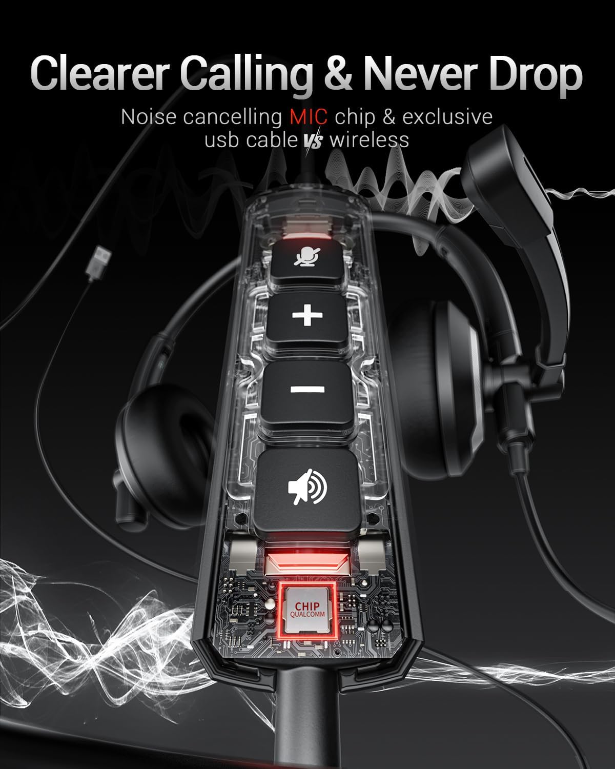 - ✅【Clearer Calling with Noise Cancelling MIC&Never Drop】Using the noise reduction technology can eliminate up to most surrounding noise,and wired noise cancelling is never drop and more stable than wireless headset. USB headphones can pick up your voice more accurately, allowing your friends to hear you more clearly. This is perfect for online courses, Skype chats, call centers, webinar presentations, office, corporate, Rosetta Stone, Dragon Talk, conference calls, and remote work.
