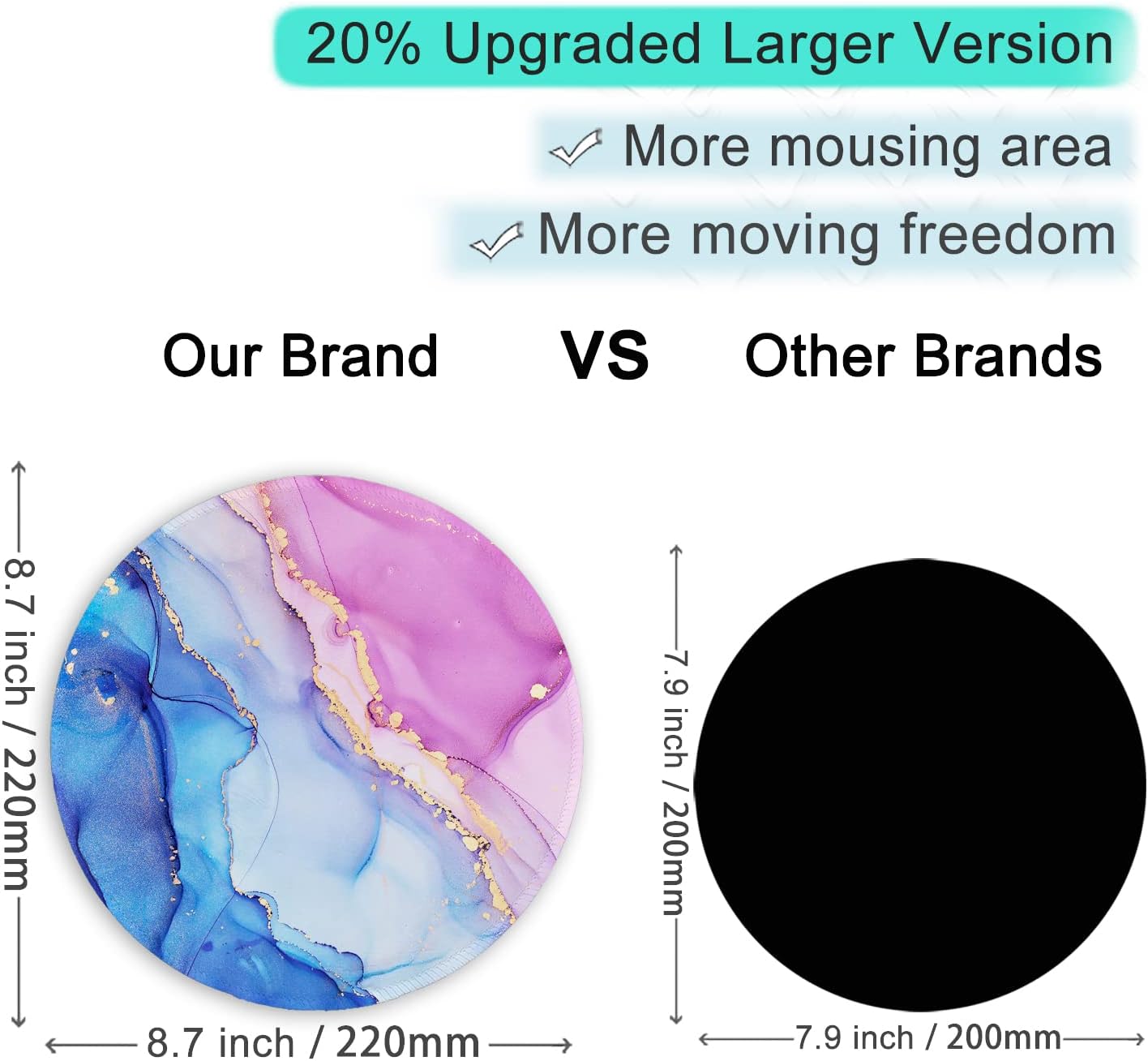 - Outstanding Anti-slip & Smooth Surface:Our circular mouse pad has a premium rubber base for excellent grip, staying put on any desk. Its smooth top enables effortless mouse gliding. Whether gaming or designing, it minimizes friction for precise cursor control, a must-have for pros and gamers