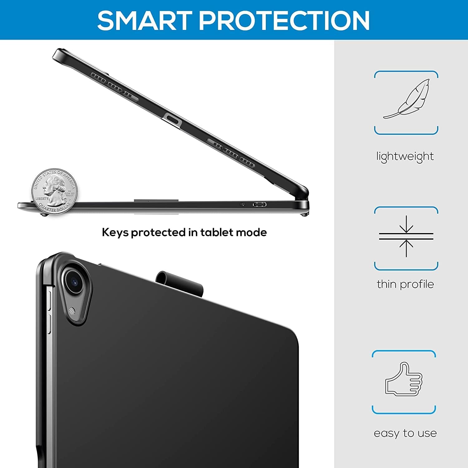 - SMART COVER-----Auto Sleep/Wake Function: Once you open or close the plastic keyboard case, your tablet would automatically wake up or enter sleep mode. This preserves battery life and extending device longevity