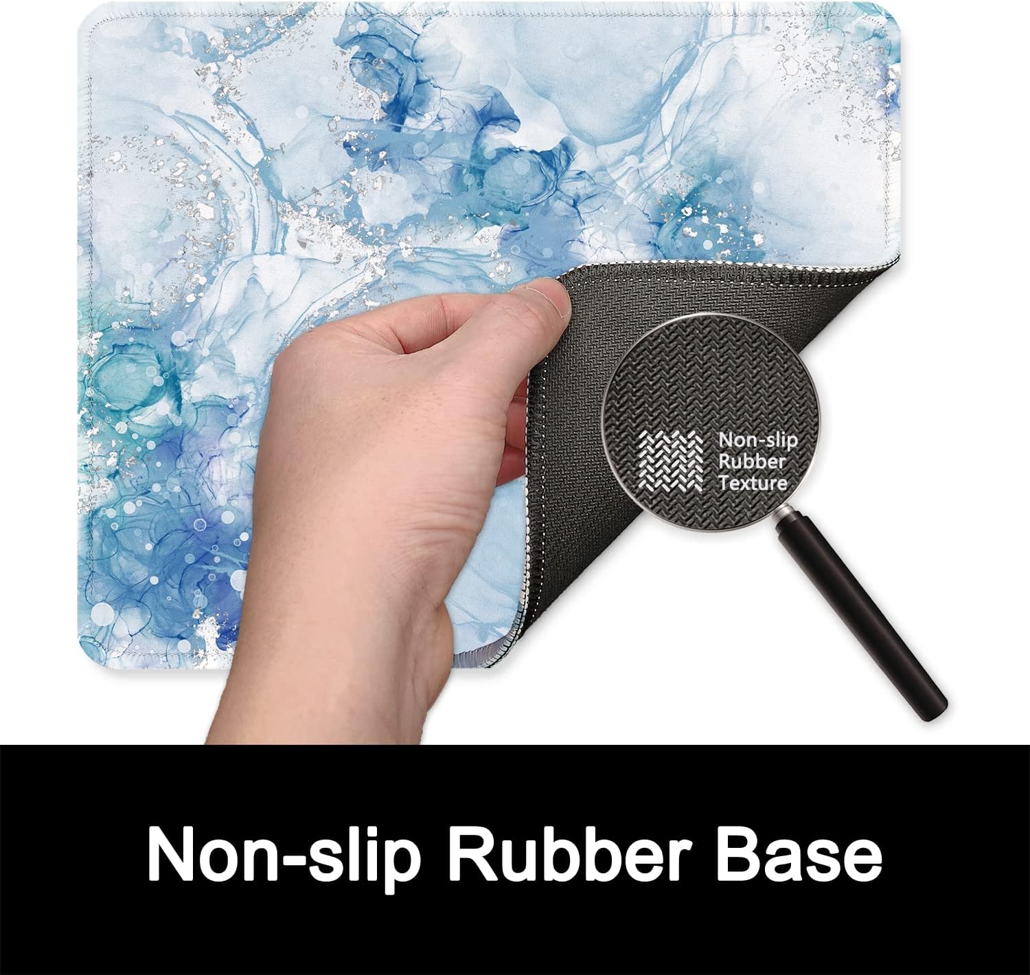 ITNRSIIET Mouse Pad with Stitched Edge Premium Textured Smooth Precise Operation Waterproof Washable Non-Slip Rubber Base Desktop Protection Mat, 10.2×8.3×0.12 inches, Blue Abstract Marble