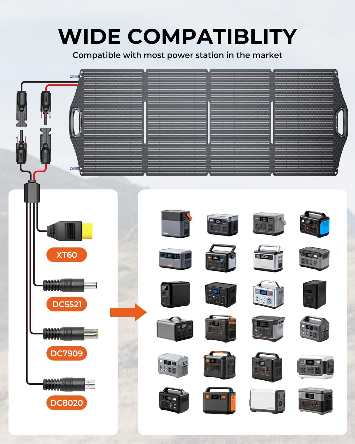 - Wide Compatibility: Equipped with a convenient MC-4 connector and MC-4 to DC551/8020/7909/ XT60 cable, BigBlue 200W solar panel seamlessly integrates with most power stations, ensuring consistent energy production for power outages and effortless setup.