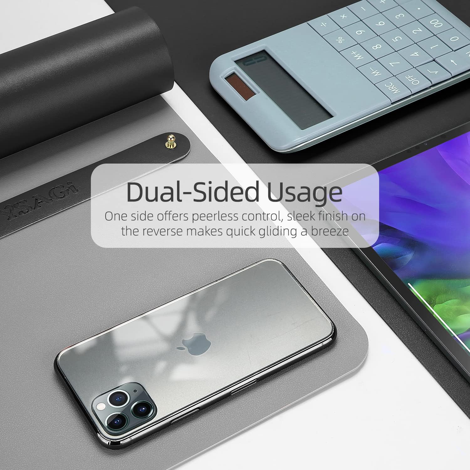 YSAGi Dual-Sided Desk Pad Protector, Waterproof Leather Desk Mat, Large Mouse Pad, Office Desk Pad Writing Pad (23.6" x 13.7", Black+Grey)
