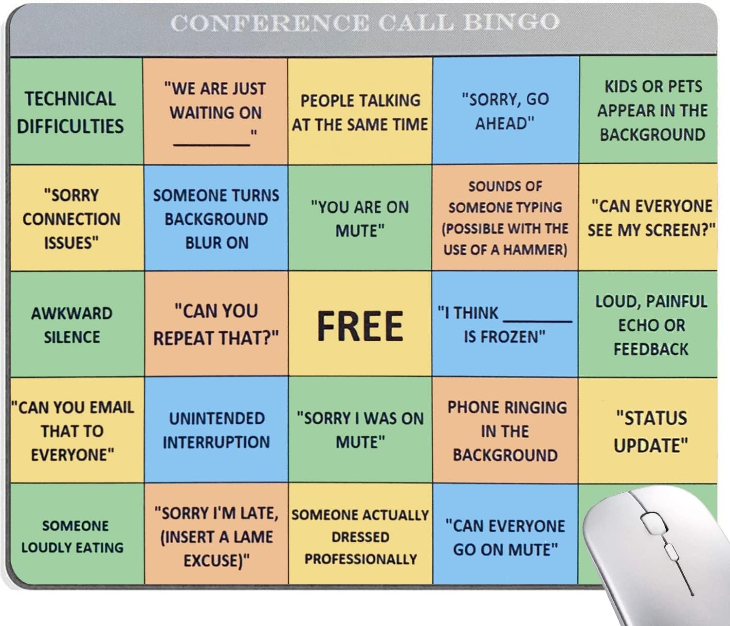 Conference Call Bingo Mouse Pad, Personalized Mouse Mat Waterproof Non-Slip Rubber Base MousePads for Office Home