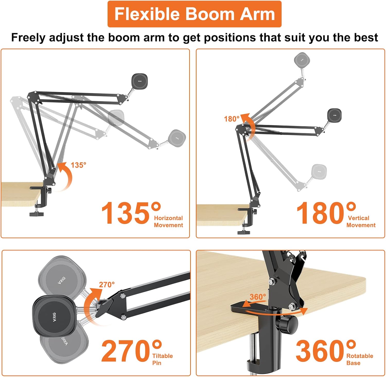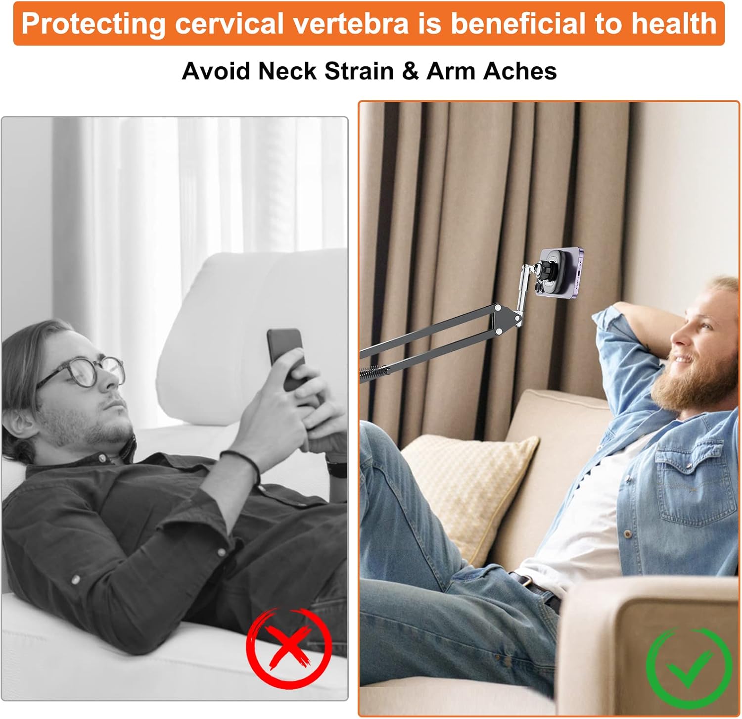 UURIG Overhead Phone Mount Stand with Magsafe, Articulating Arm Cell Phone Holder for Desk, Cell Phone Holder for Live Streams, Zoom Calls, Online Teaching, Selfies, Remote Working