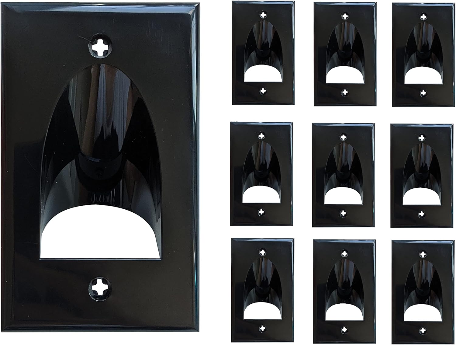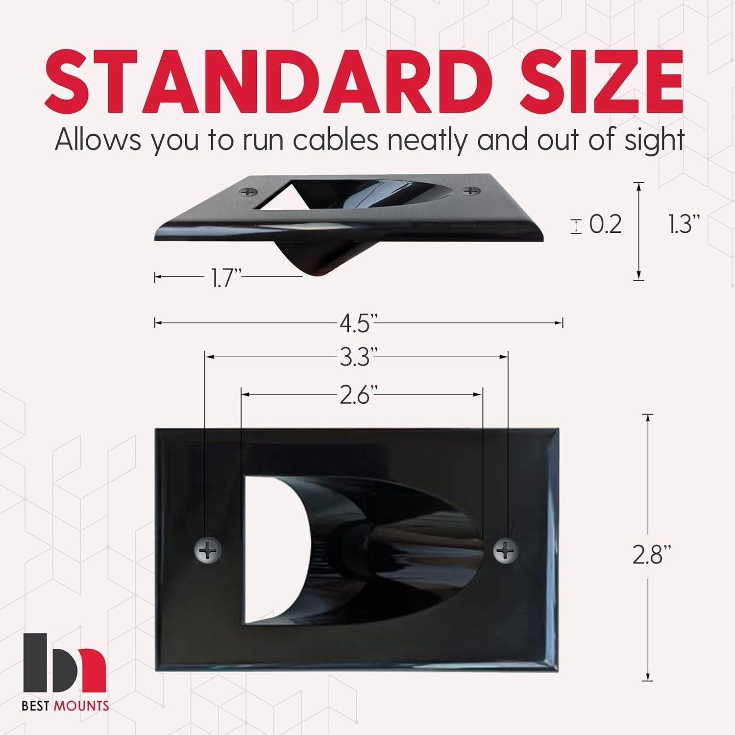 BestMounts - 10 Pack Inner Nose Behind Wall Cable Management TV Cord Hider for Wall Mounted TV - Single Gang Low Voltage Recessed Wall Plates Cable Pass Through for Wires, HDTV, HDMI (Black)