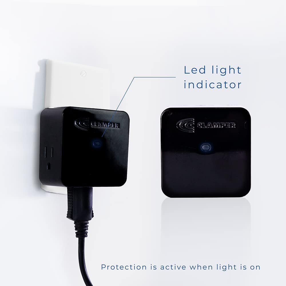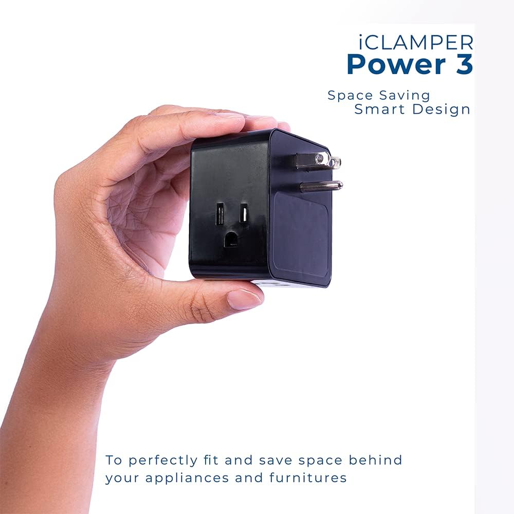 Clamper 3-Outlet Surge Protector 1800 Joules, 1875W, for TV, PC, Xbox, PS5, Refrigerators and Other Appliances (Compact Wall Surge Protector), iCLAMPER Power 3, 2-Pack Black