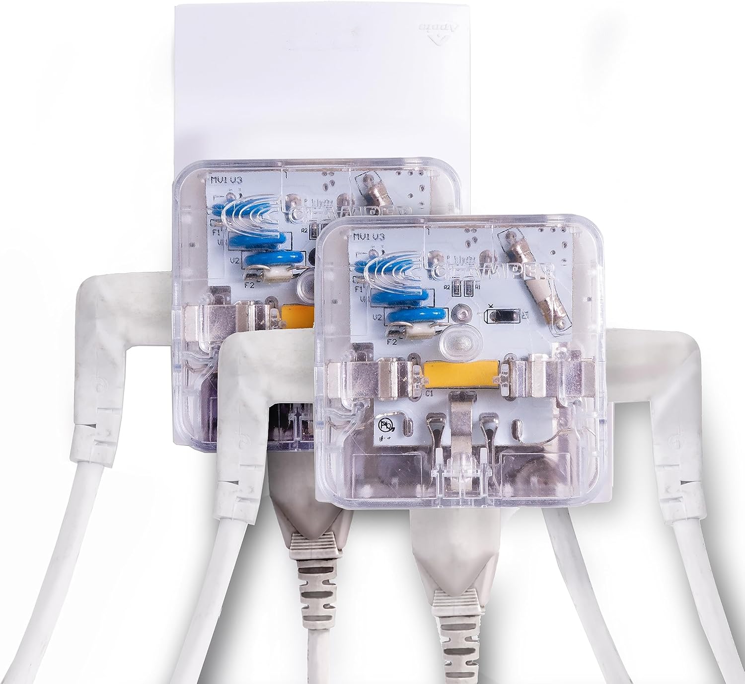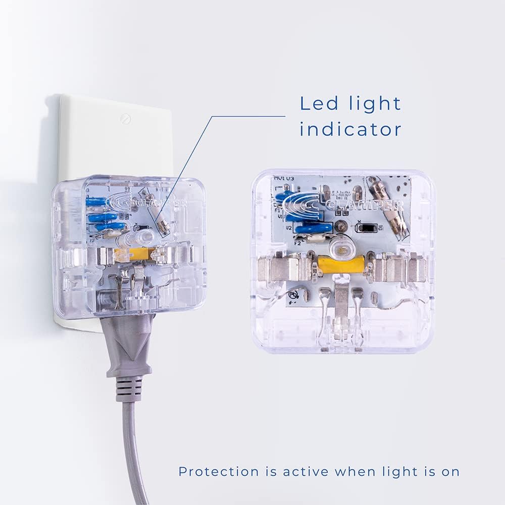Clamper 3-Outlet Surge Protector 1800 Joules, 1875W, for TV, PC, Xbox, PS5, Refrigerators and Other Appliances (Compact Wall Surge Protector), iCLAMPER Power 3, 2-Pack Clear