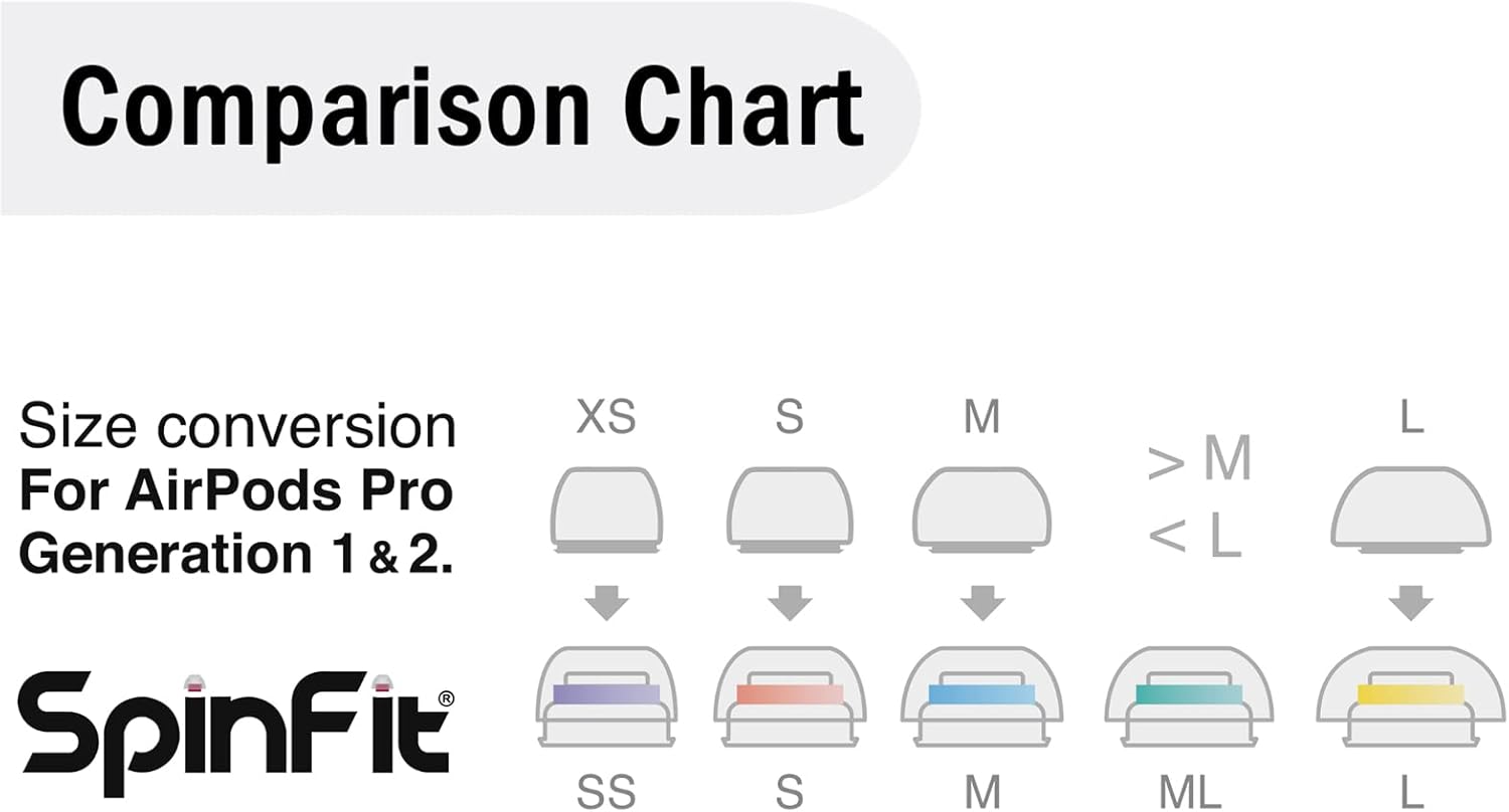 SpinFit Superfine for AirPods Pro Gen 1 & 2 - L - Medical Grade Silicone Patented Replacement Ear Tips and Adapters for Supreme Comfort (one Pair)(Ear Tips Installed)