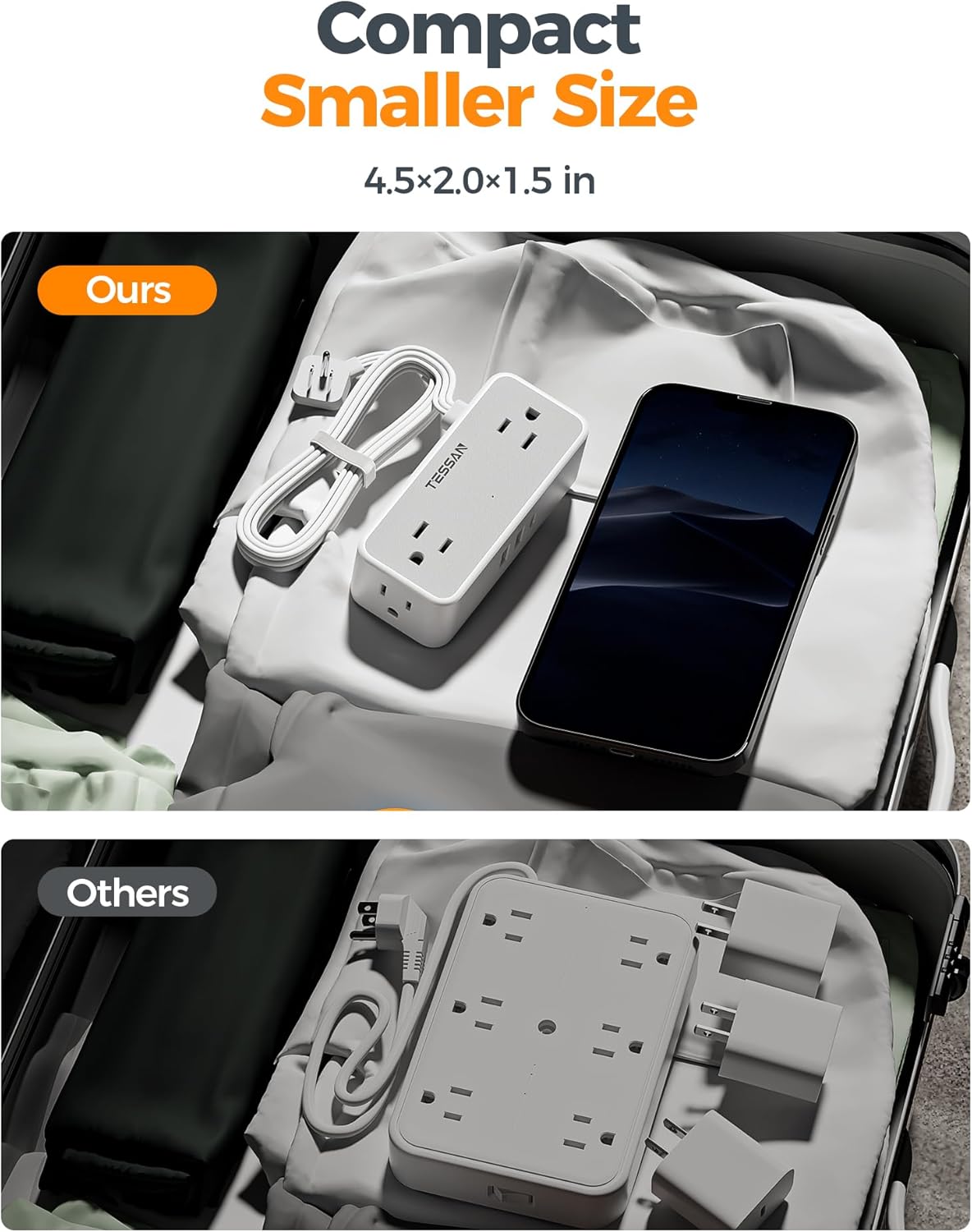 - 900J TESSAN Surge Protector Outlet: Power strips with surge protection are equipped with short-circuit protection and over-current protection. This flat outlet extension cord can protect your electrical appliances