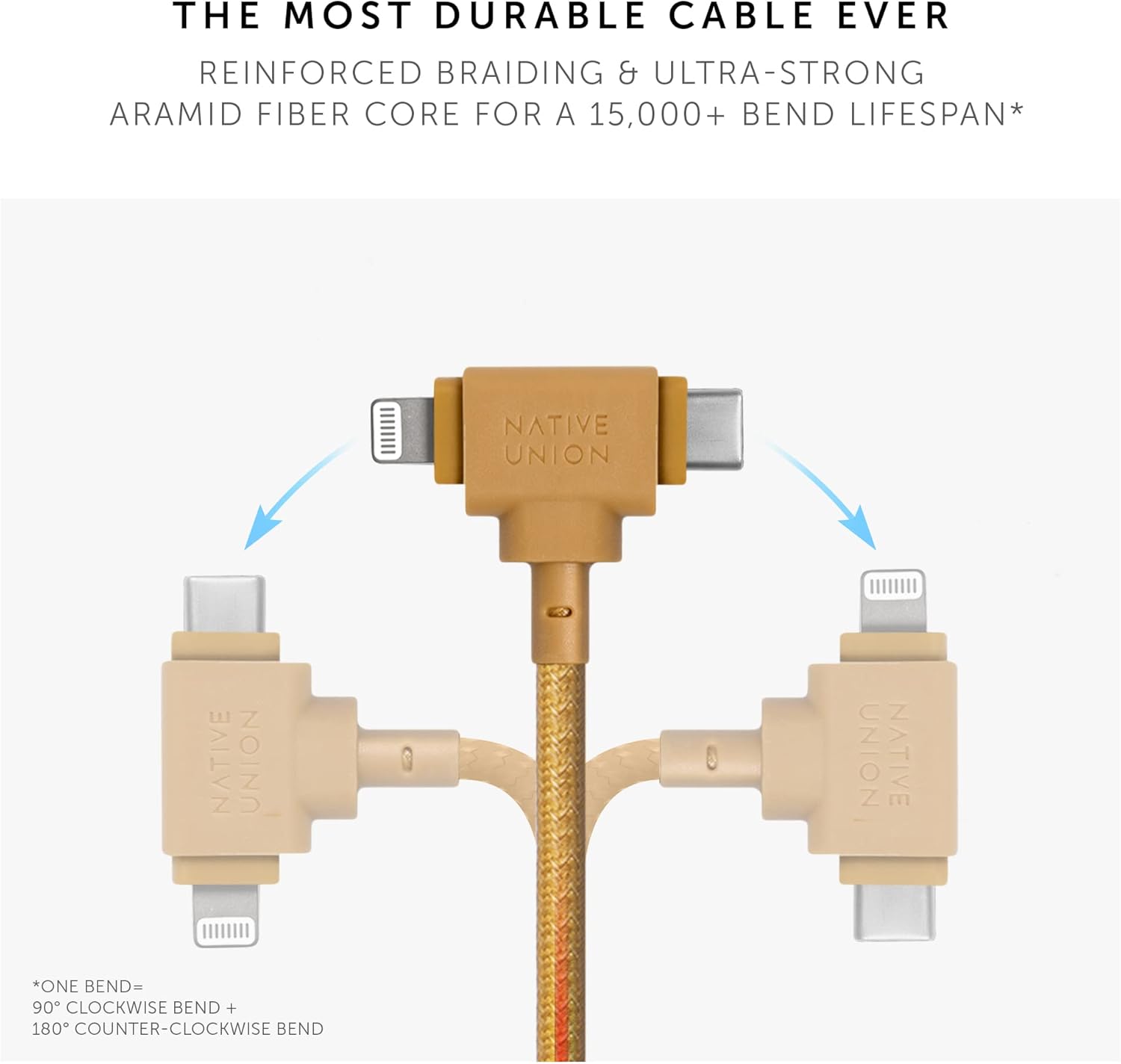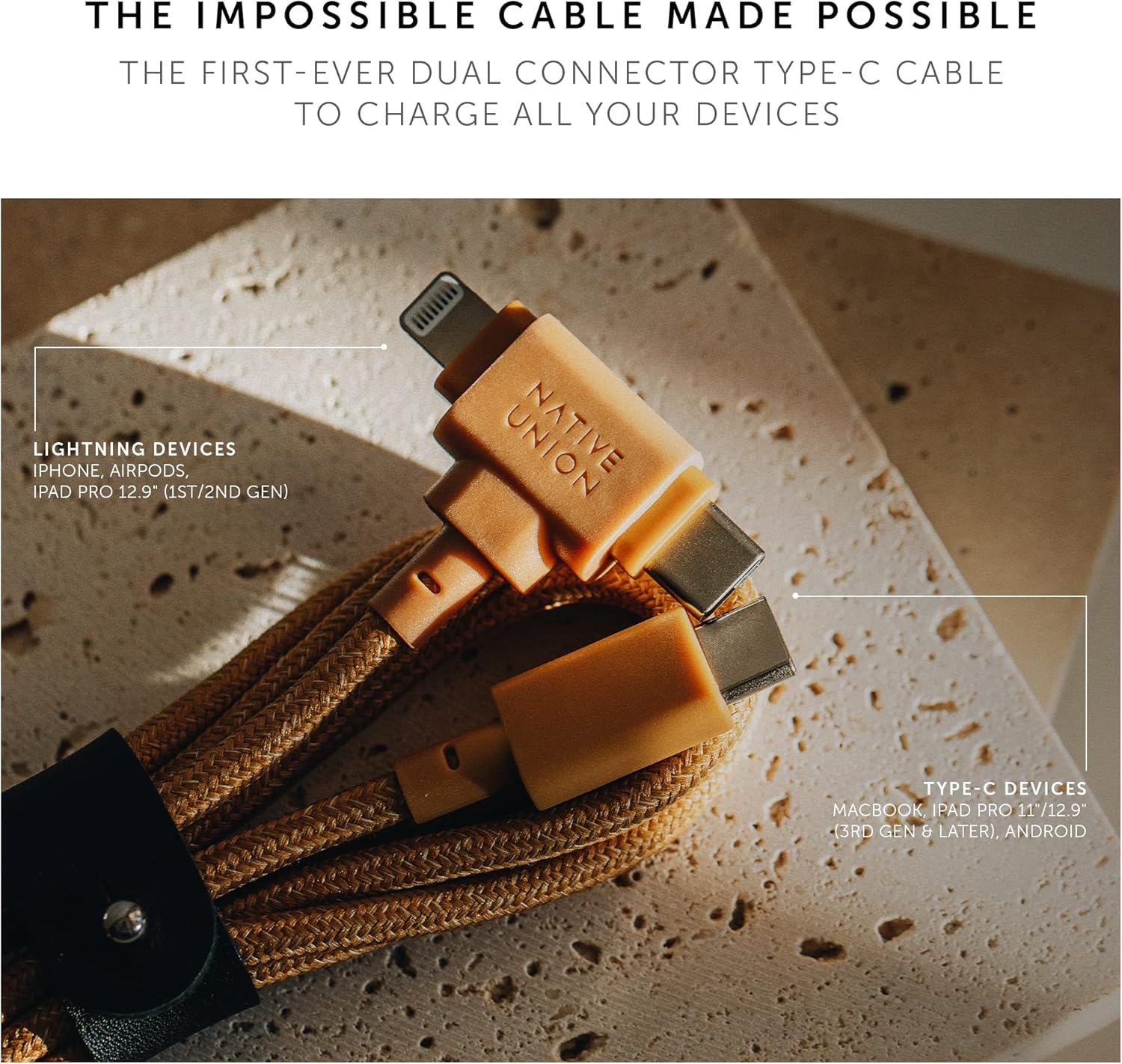 Native Union Belt Cable Duo – 5ft Ultra-Strong Braided Universal Charging Cable – Made with Recycled Materials – 2-in-1 Multi-Device MFi Certified Connectors for Lightning & Type-C Devices (Kraft)