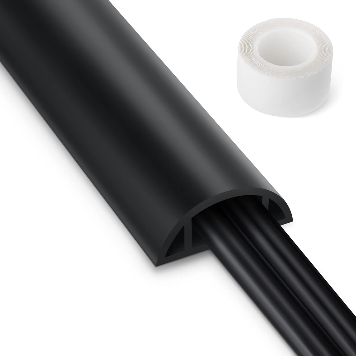 - Large Capacity—Suitable for Hiding 2–3 Cables: Size: 3’ long, 1.38" (W) x 0.55" (H); internal channel diameter: 0.7" (W) x 0.4" (H). This floor cable cover can hide two thick 0.43" (11 mm) power board extension cables, or three Ethernet cables, speaker cables, thin power cables, etc. Note: Before ordering, please measure the diameter of your cable, to choose the right size.