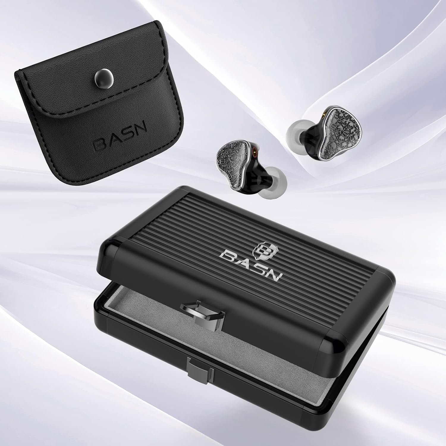 BASN Bmaster5 in Ear Monitors, 1DLC Diaphragm+4BA 5 Drivers Drummers Headphones with Silver-Plated OFC Cable, Noise Isolation IEM Earbuds for Musicians (Midnight Black)