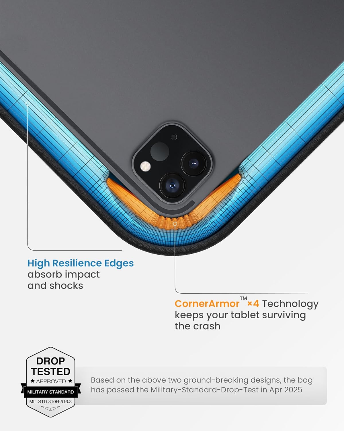 - Military-Grade Protection: To combat the toughest situations: from falls to shocks to vibrations, tomtoc proposed the concept of 360 protection and designed the tablet sleeve with CornerArmor Technology, high resilience edges, and high-density soft padding. It passed the Military-Standard-Drop-Test while also maintaining a sleek design