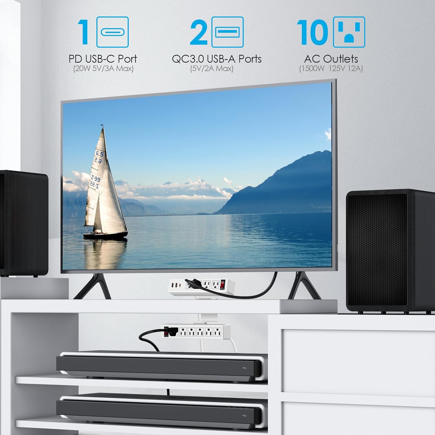 - 【13-in-1 Desk Clamp Power Strip】 - This dual desk-edge clamp power strip features two independent switches, 10 AC outlets (125V/12A/1500W), and 3 USB ports, including a 20W USB-C fast-charging port. With the ability to charge up to 13 devices at once, this power station helps save time and provides versatile charging options for all your needs.