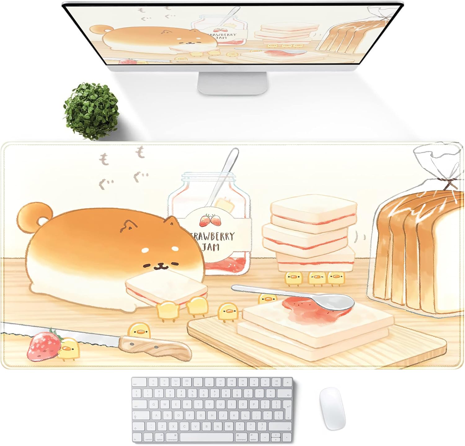 Cute Desk Mat Anime Cartoon Desk Pad Mouse Pad Kawaii Large Yellow Shiba Inu Gaming Mousepad XXL Laptop Keyboard Desktop Writing Pad Stitched Edge Desk Accessories for Girls Students 31.5''X15.7''