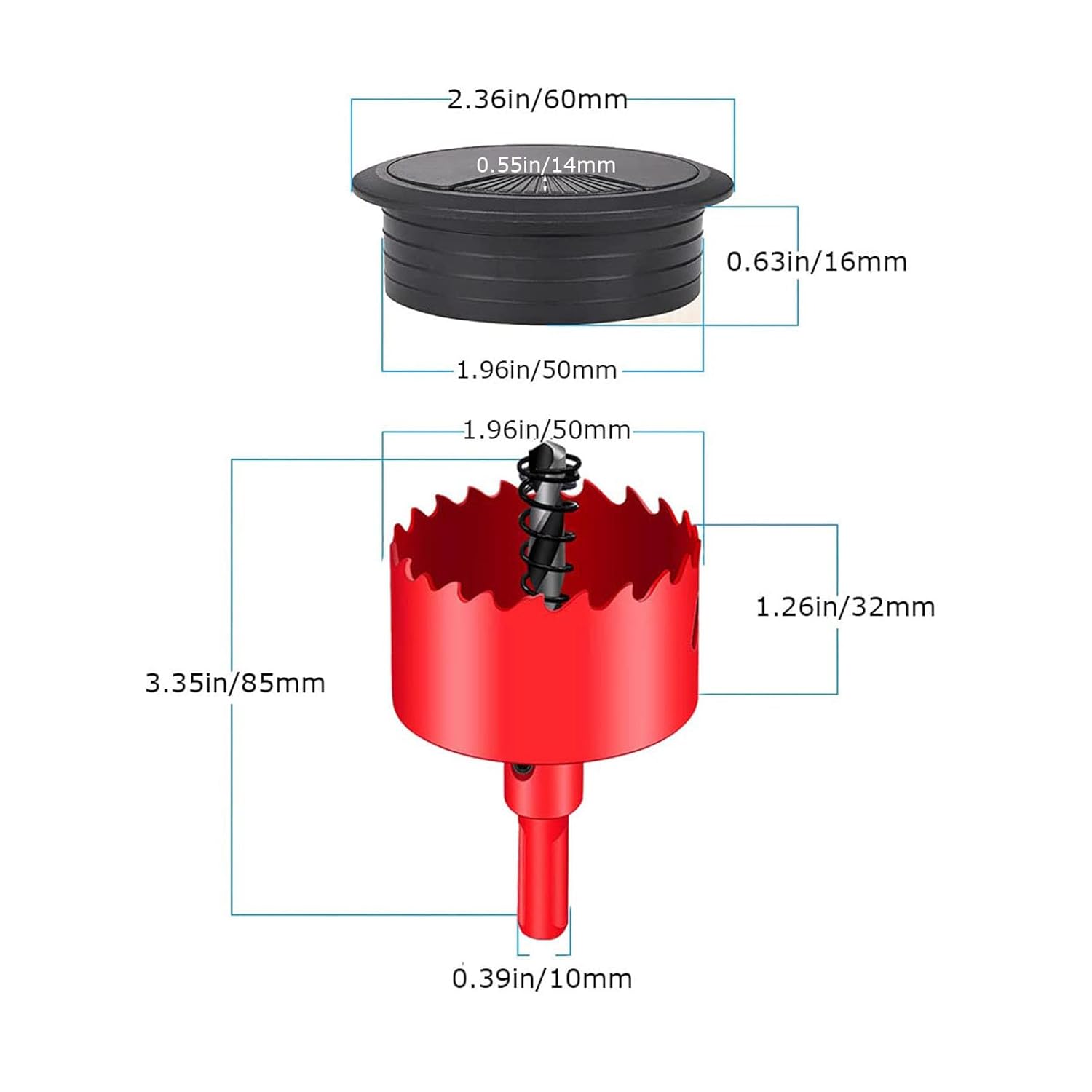 - 【Easy to Use】the desk grommet adopt detachable cover design which ensure convenient to use or disassemble. When drill a wood boards or such thing with a thickness of more than 10 mm, please remove the spring!
