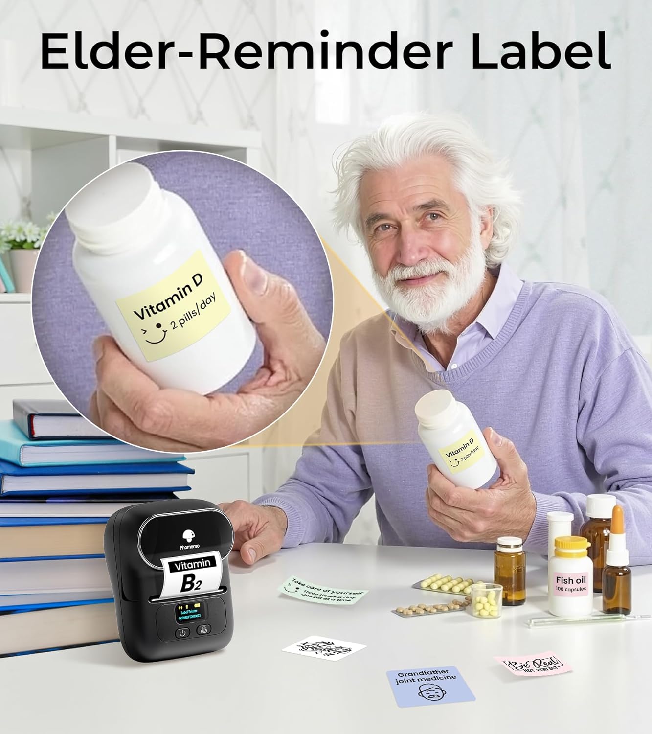 - [Custom labels for diversity]-Phomemo label printer havs multiple styles of label tape for choosing, such as coloured labels, clear labels, round rectangular labels, price labels and more. They are highly adhesive, peel off without residue and are also scratch resistant, water and oil repellent.
