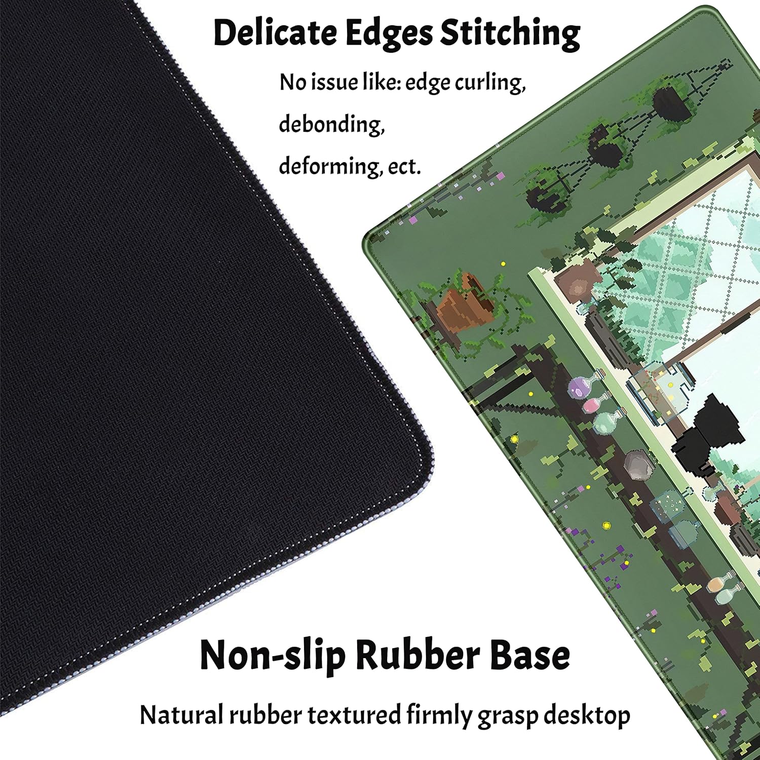 - 【Extended XX-Large Size Design】Cute kawaii sage house plants gaming desk pad 31.5×15.75×0.12 inch(800×400x3mm)size is large enough to accommodate your laptop, keyboard, mouse and other desk items.