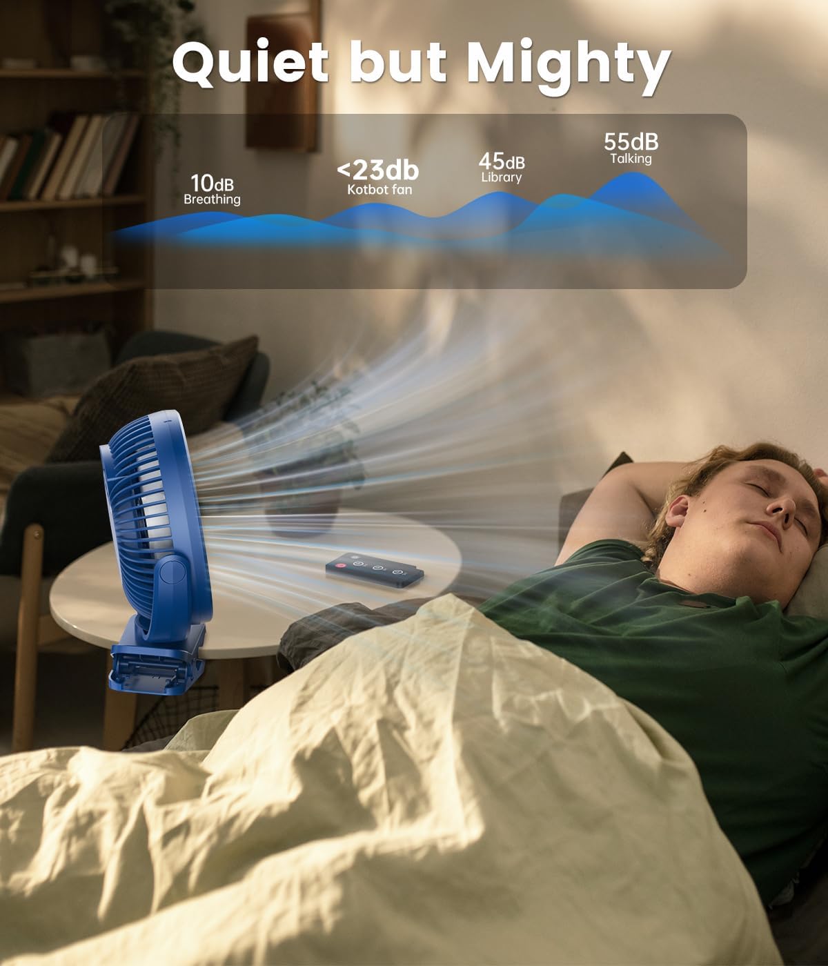 - 3.Quiet Operation: With a working volume of less than 23 decibels, this fan operates quietly, making it perfect for use in a bedroom, library, or office. Its low noise output ensures that it won't distract you or your coworkers, making it perfect for use as a USB fan or clip-on fan.