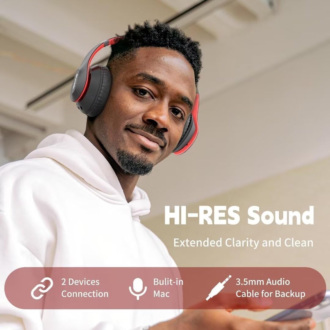 Wireless Bluetooth Headphones Over Ear 65H Playtime HiFi Stereo Headset with Microphone and 6EQ Modes Foldable Bluetooth V5.3 Headphones for Travel Smartphone Computer Laptop