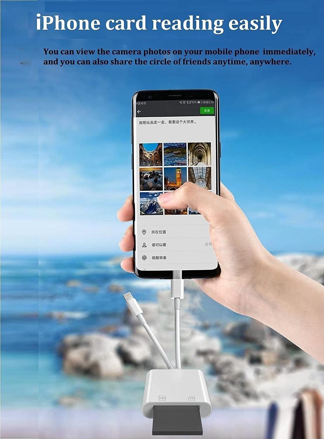 - 【High Speed Data Transmission】: The Apple MFi certified chip ensures the safe transmission of your device and data, The sd card reader for iphone data transmission speed can reach 20MB/S~30MB/S,the memory sd card reader for iphone can transmit photos and videos of your camera to your device in a few seconds, saving a lot of time, but also can ensure transfer safety.