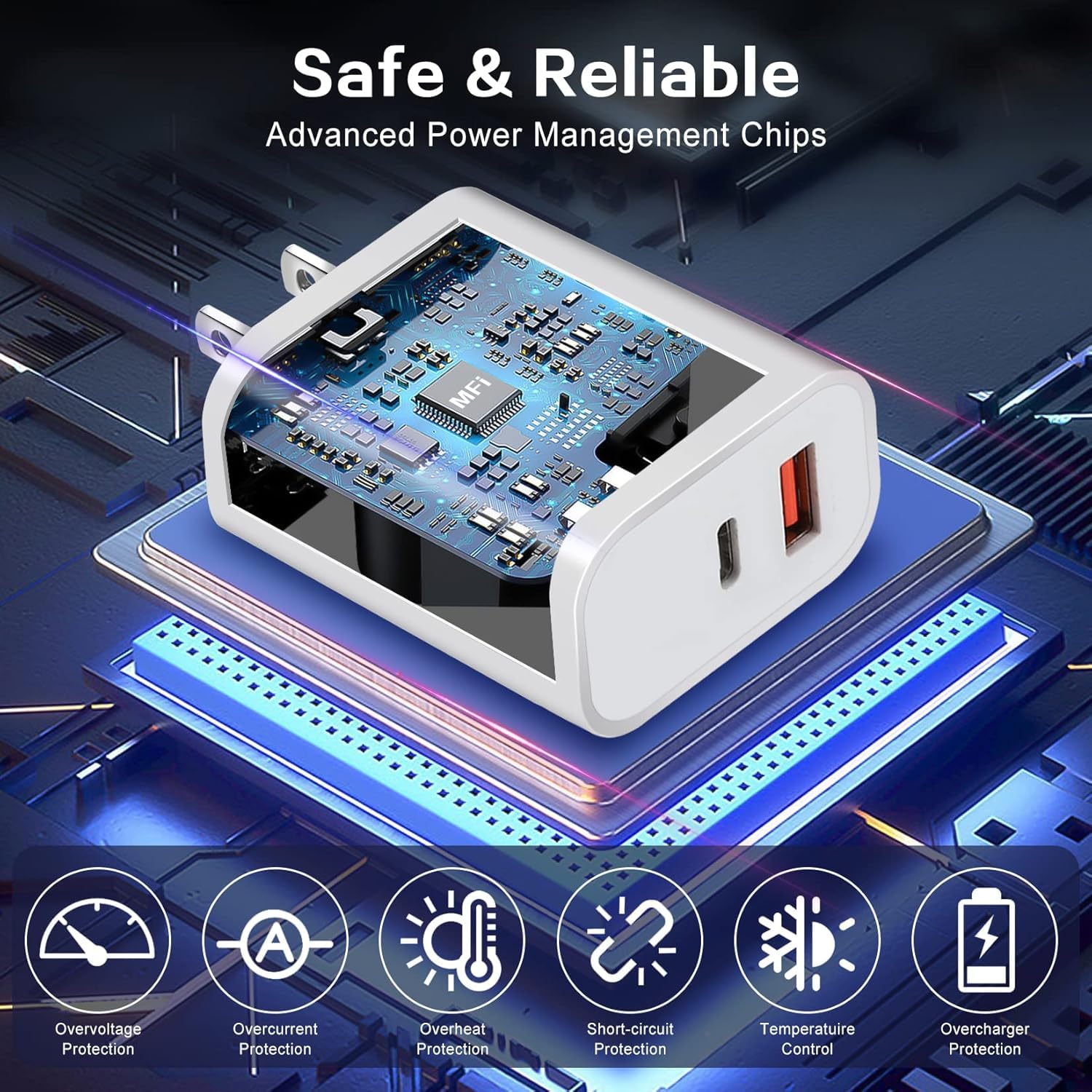 - 【Fast iPhone Charger Quality Service Warranty】2 Pack 20 Watt Double Port USB-C and USB-A Fast iPhone Wall Charger Block + 2Pack 6 Feet MFi Certified USB Type-C to Lightning Cable. Welcome to Contact us About the iPhone Charger for any Doubts,we Will Reply You Within 24 Hours.